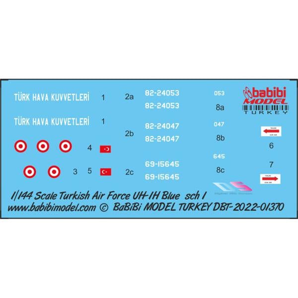 Babibi DBT-01370 1/144 UH-1H Iraq Turkish Air Force Blue Camouflage, Dekal Declaration