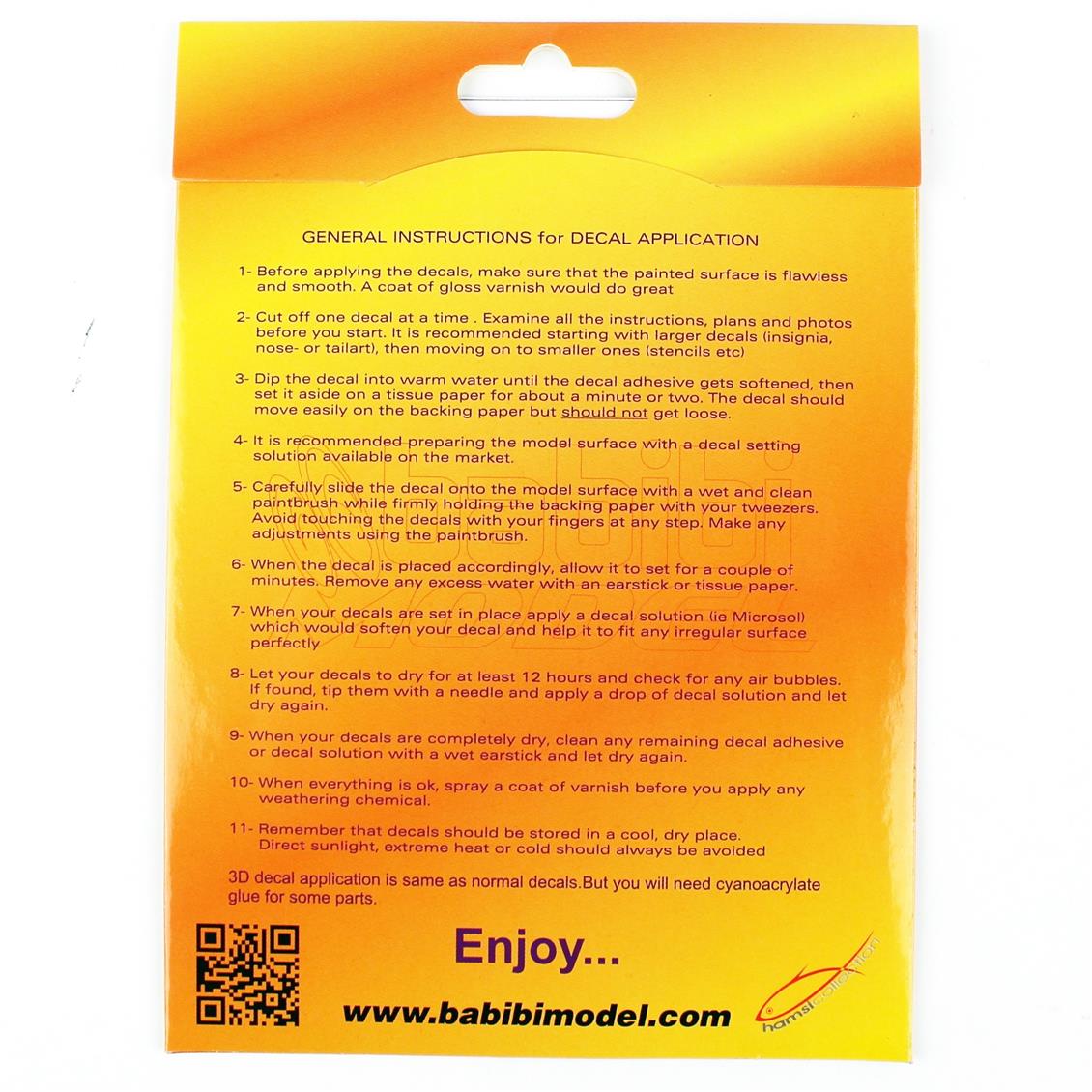 Babibibi, who has produced plastic model kits for many years, has now produced the best 3D decals with its innovative staff. The company, which thinks to the finest detail of the aircraft models we make, produces its decals in the same quality. In fact, if you look at the company, there is not much information about the internet world. However, their stickers reveal their stickers.
