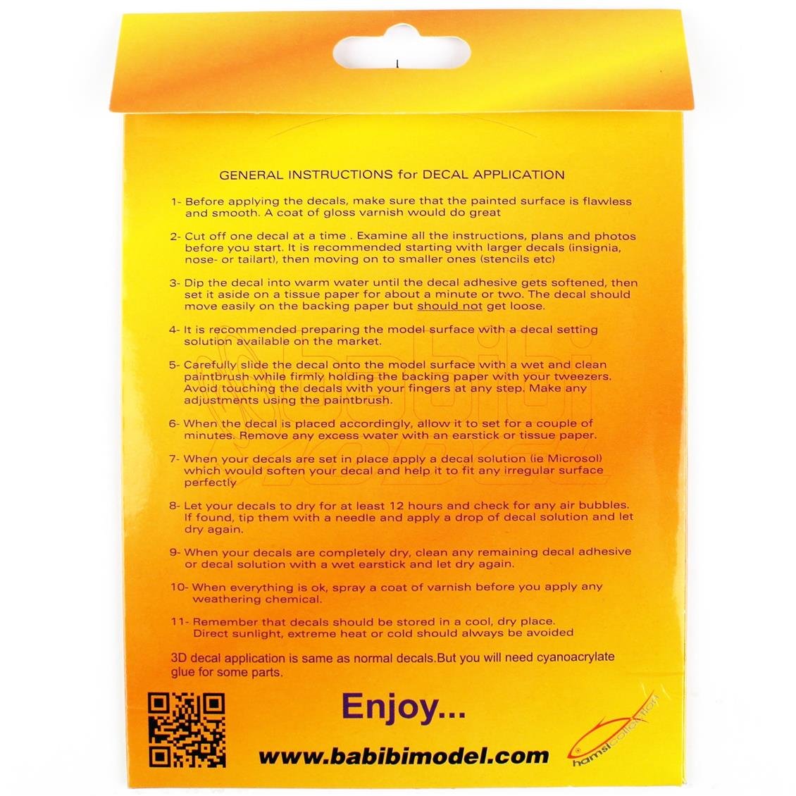 Babibibi, who has produced plastic model kits for many years, has now produced the best 3D decals with its innovative staff. The company, which thinks to the finest detail of the aircraft models we make, produces its decals in the same quality. In fact, if you look at the company, there is not much information about the internet world. However, their stickers reveal their stickers.