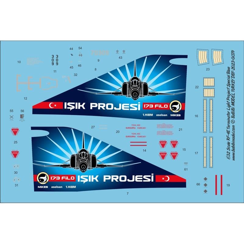 Babibi DBT-01379 1/32 RF-4E Terminator Light Project Special Painting Decal Set Blue, Dekal Declaration