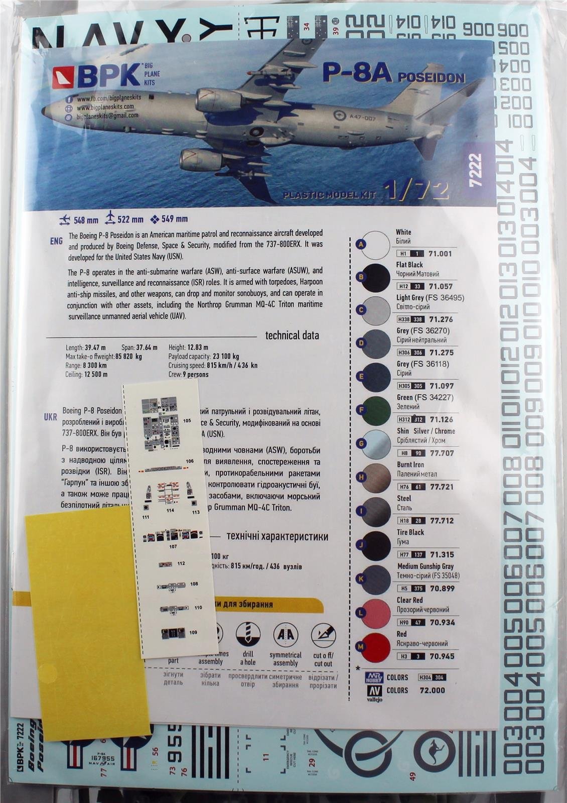 Big Planet Kits 7222 1/72 scale, P-8a Poseidon Passenger aircraft, plastic model kit