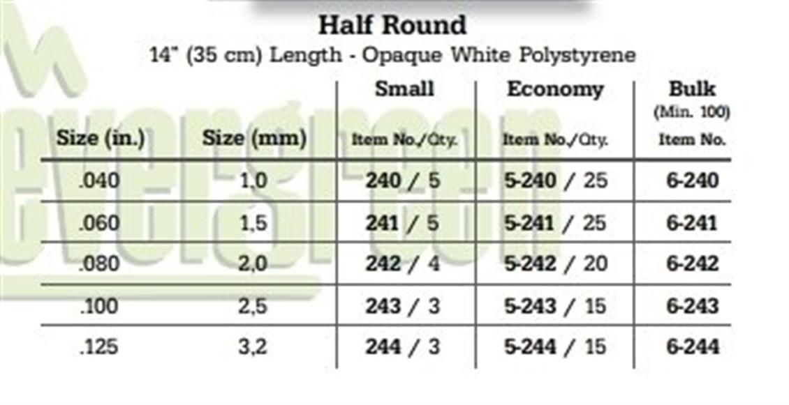 Evergreen 244 3.20*355mm Half Round Rod-3 pcs -White (EV244)