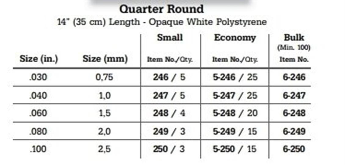 Evergreen 250 2.50*355 Mm Quarter Circle Rod - 3 Pieces - White (EV250)