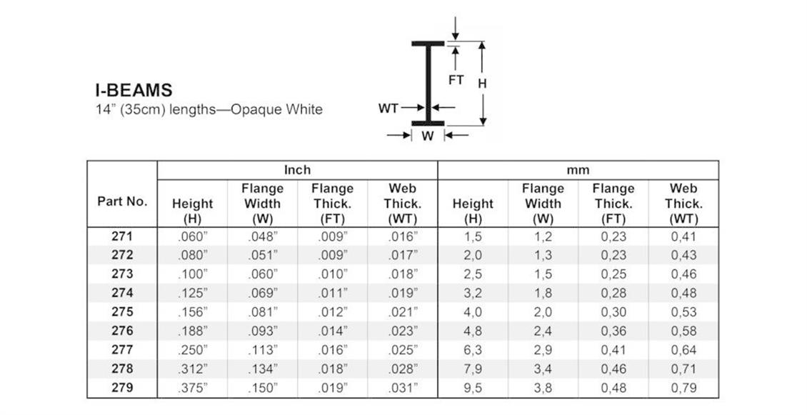 Evergreen 274 3.2*355 mm I profile-4pcs -White (EV274)