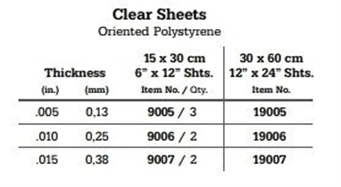 Evergreen 9006 0.25*150*300mm Transparent Sheet-3 Pieces (EV9006)