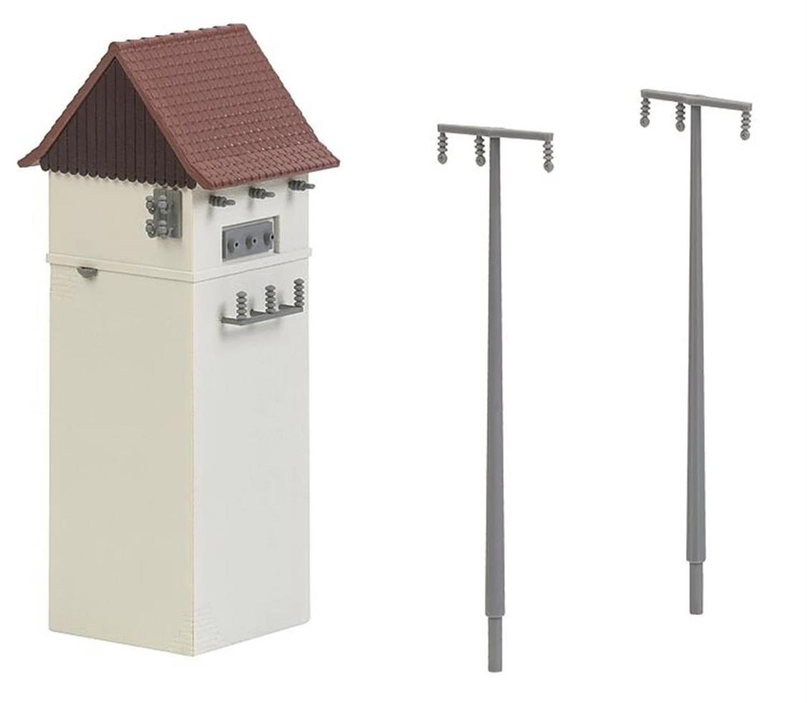 Faller 120241 1/87 Transformer Building and Poles Disassembled Plastic Model