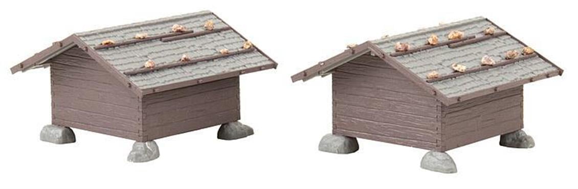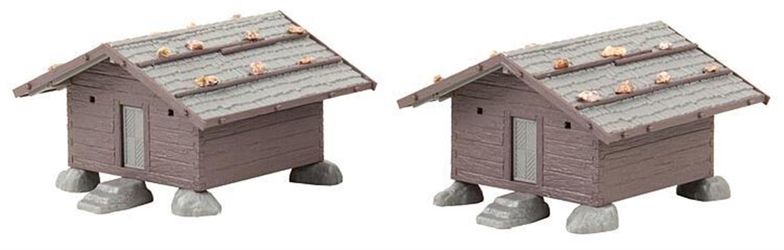 The world of mountain farming. Set of two functional buildings serving as straw or firewood warehouse.The train diorama is like reaching the most extreme point of the hobby. You will need various houses and models when creating your own dream world. The larger your dream world, the more beautiful you will do. If you want to remind the 1930s on a scale of 1/87. Choosing the straw warehouse model would be the right decision. The finest detail is processed to the model.