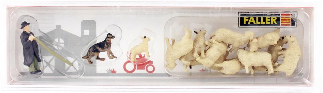 Faller 151901 1/87 Scale, Sheep, Shepherd and Dog Figures, 14 Pieces (FL151901)