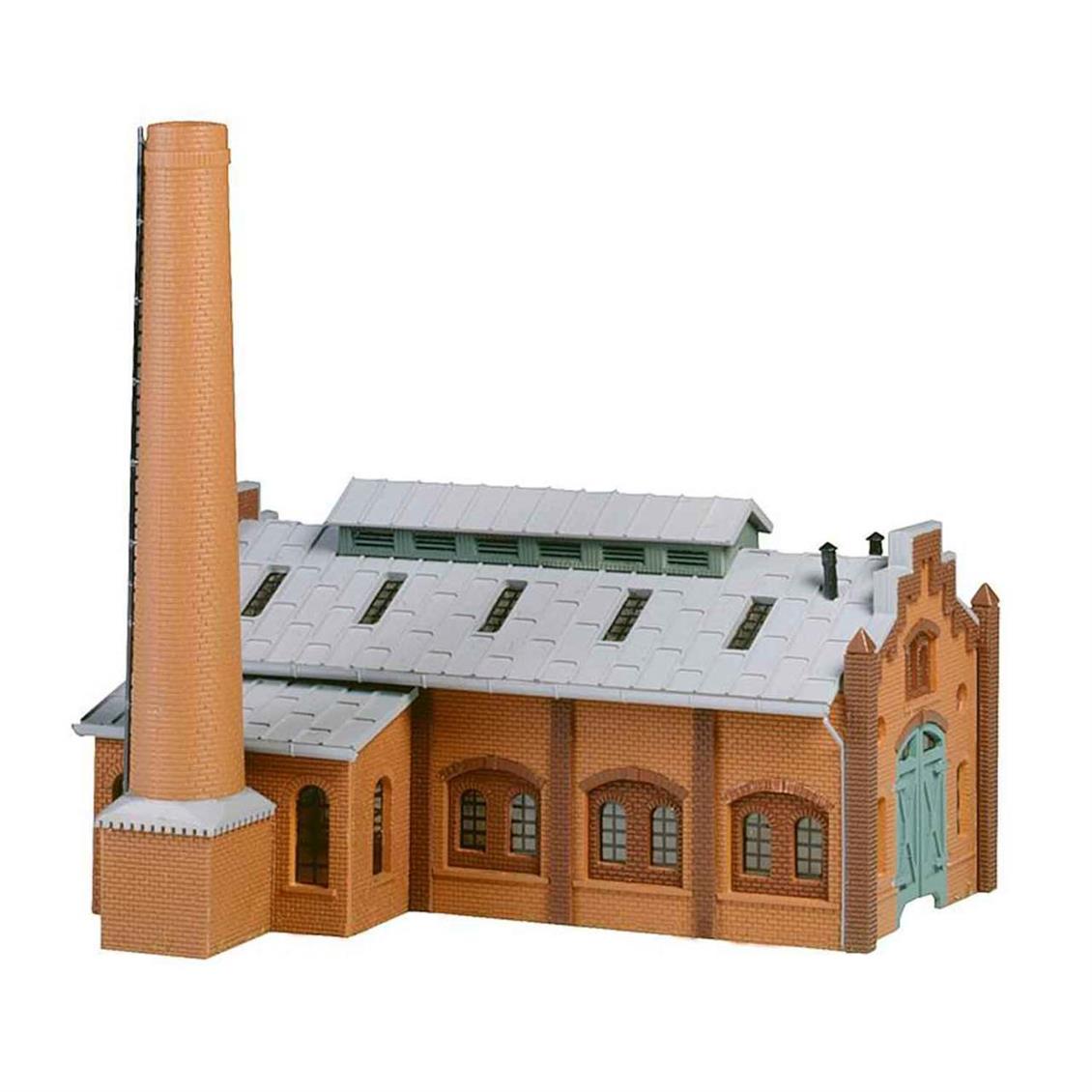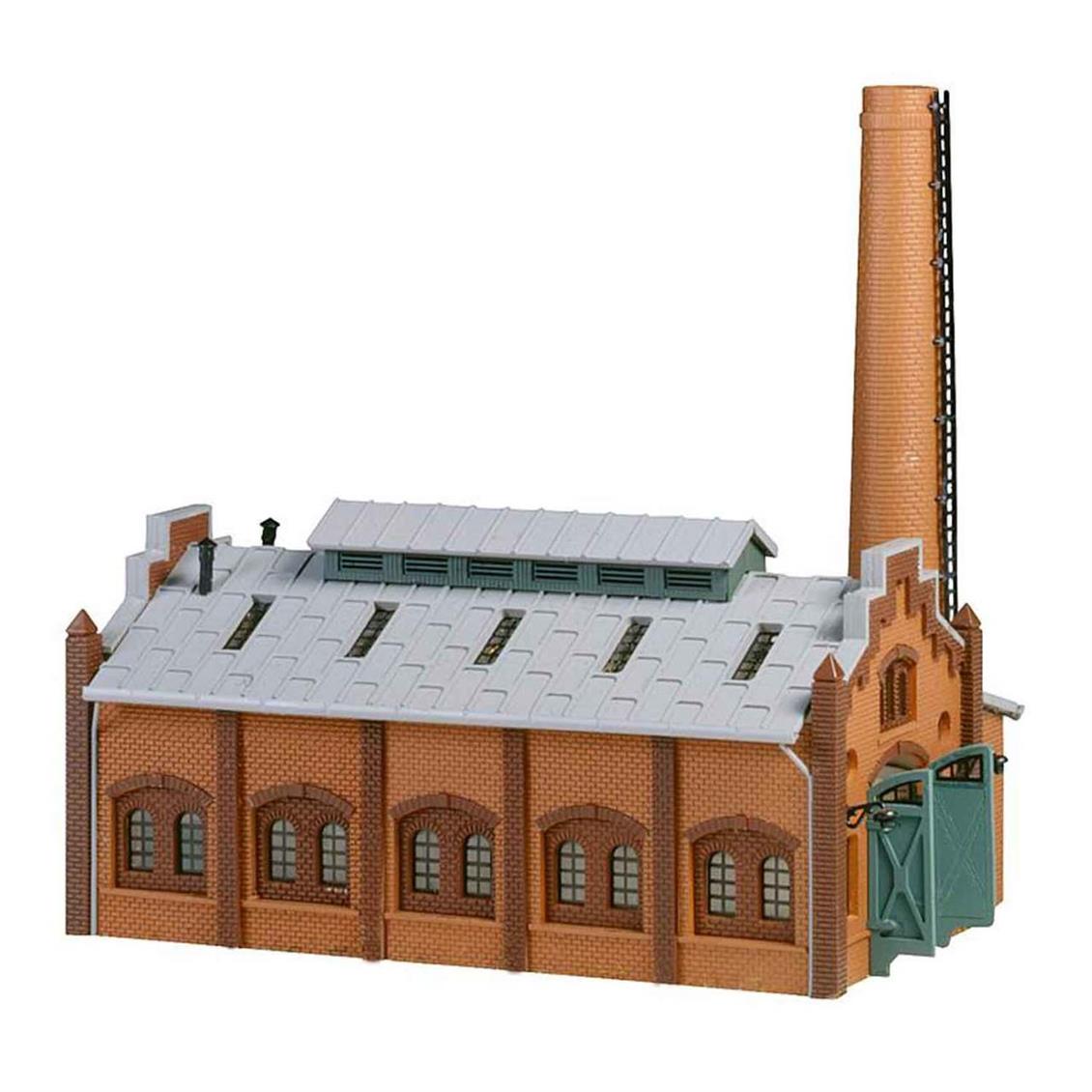Locomotive repair house with a colorful, high chimney that you can use in your diorarama or architectural projects.