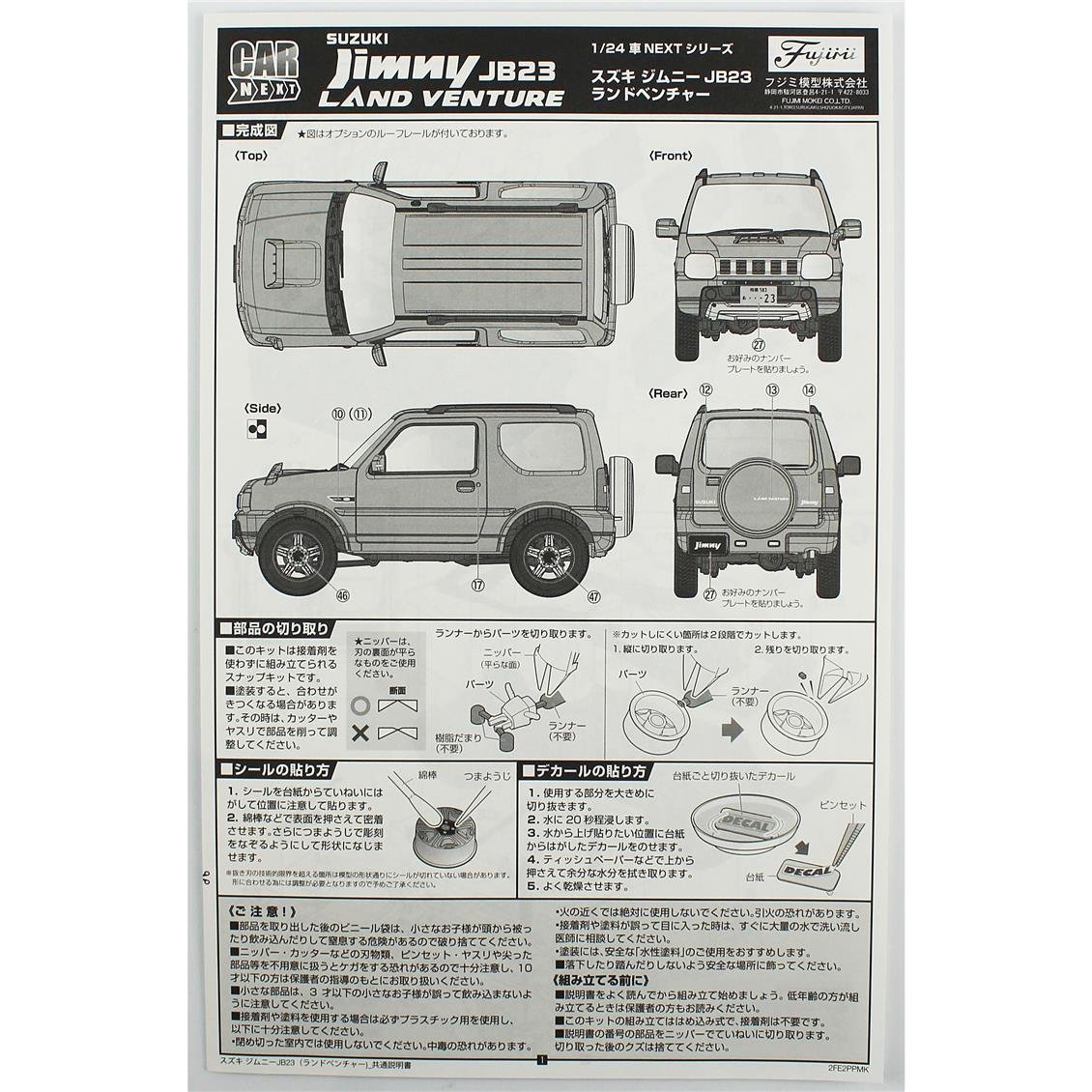 Fujimi C-NX-15 06632 1/24 Scale Suzuki Jimny JB23 (Rand Venture/Nocturne Blue Pearl) Jeep Plastic Model Kiti offers a special version of the popular 4x4 tool Jimny. In this model kit, it is observed that a version of Jimny with a "Rand Venture" equipment is designed in Notturne Blue Pearl. This color increases the elegance of the model with a deep and rich blue tone and gives it an elegant and remarkable look. My fujimi has model in detail the structure of Suzuki Jimny with compact, but strong off-road capabilities. The JB23 version is known for its round headlights, square grids and powerful bumpers that reflect the classic lines of Suzuki Jimny. In addition, the car's large wheels, high floor distance and off-road-oriented design make this kit special. The model offers a fun and visual satisfactory experience in terms of assembly for tools and collectors. In addition to the color of Noctturne Blue Pearl, the internal and outdoor features shaped by detailed workmanship of this kit complete the model in a realistic way. This Kit, which is an excellent option for both beginners and experienced modelists, will be a great collection for those who appreciate Suzuki Jimny's off-road style.
