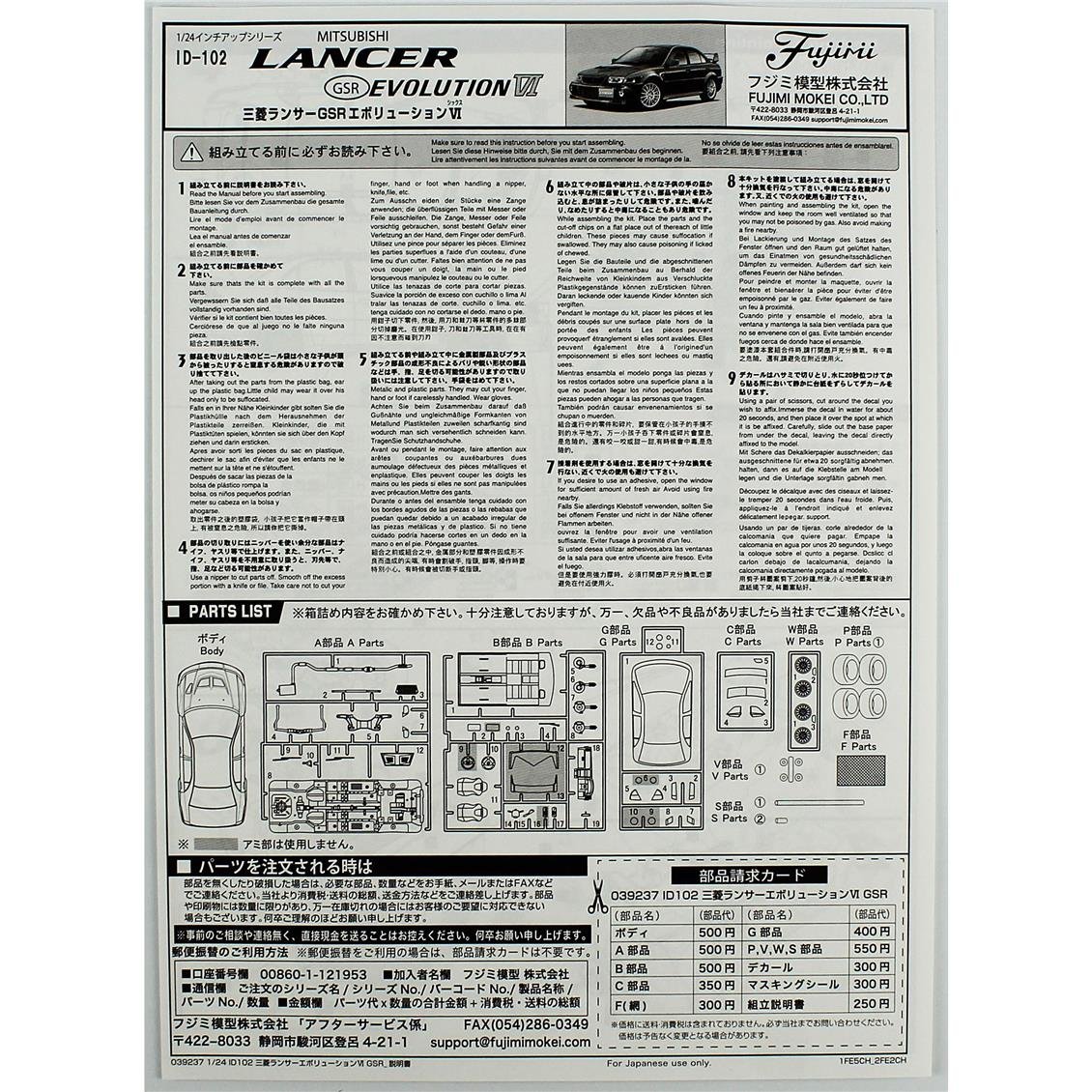 Fujimi ID-102 03923 is a 1/24 scale plastic model kit of Mitsubishi Lancer Evolution VI GSR. Mitsubishi's Evo VI GSR model has achieved a great place in the performance world and attracted attention with its success in the WRC (World Rally Championship). Fujimi carefully presents all the details of this legendary vehicle to modelists. The Kit accurately reflects the aggressive and aerodynamic design of the Lancer Evolution VI, its wide fenders, its special wheels, and the iconic front grille. The sporty stance of the vehicle stands out in every detail in the model. In addition, it contains a special feature, such as a glass painting mask, which facilitates the painting of glass areas and provides a cleaner result. The interior is also very detailed and is modeled in accordance with the reality of elements such as instrument panel, steering wheel and seats. Thanks to Fujimi's quality molding technique, this model offers an excellent assembly experience for both starting and experienced modelists. When you complete the Mitsubishi Lancer Evolution VI GSR, it will be a glamorous collection for motorsports and performance tools. It promises an excellent model experience with both external and interior details. Recommendations