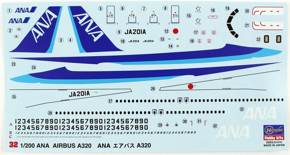 Hasegawa 32 10732 1/200 Scale Main Airbus A320 Passenger Aircraft Plastic Model Kit