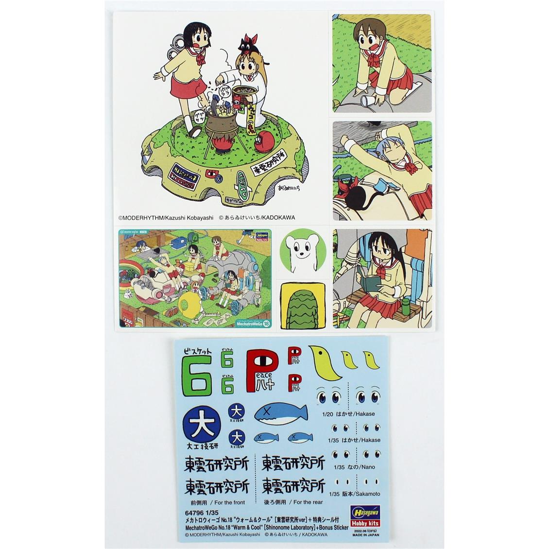 To celebrate the relaunch of "Nichijou", we are once again releasing a collaboration kit with Mechatro Wego [Shinonome Institute edition]!This time, a new "Bonus Seal" has been added, making it a little more luxurious♪ MechatroWeGo is a set of two products from Shinonome Research Institute in the colors "Hot" and "Cool". An original sticker drawn by Keiichi Arawa is also included in the set. Also included is a plastic model figure!1/35 scale Hakase, Nano and Sakamoto (Hakase and Nano can ride MechatroWeGo)and 1/20 scale Hakase figures included ♪You can enjoy the MechatroWeGo world and daily life with various combinations ♪*Adhesive is required to assemble the figure.
