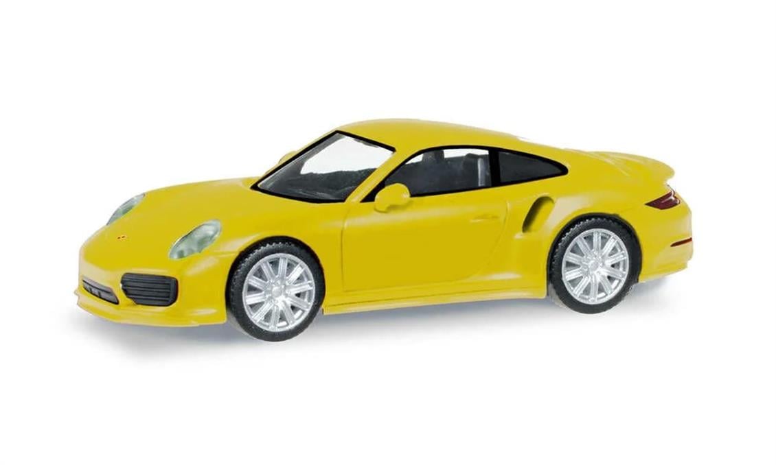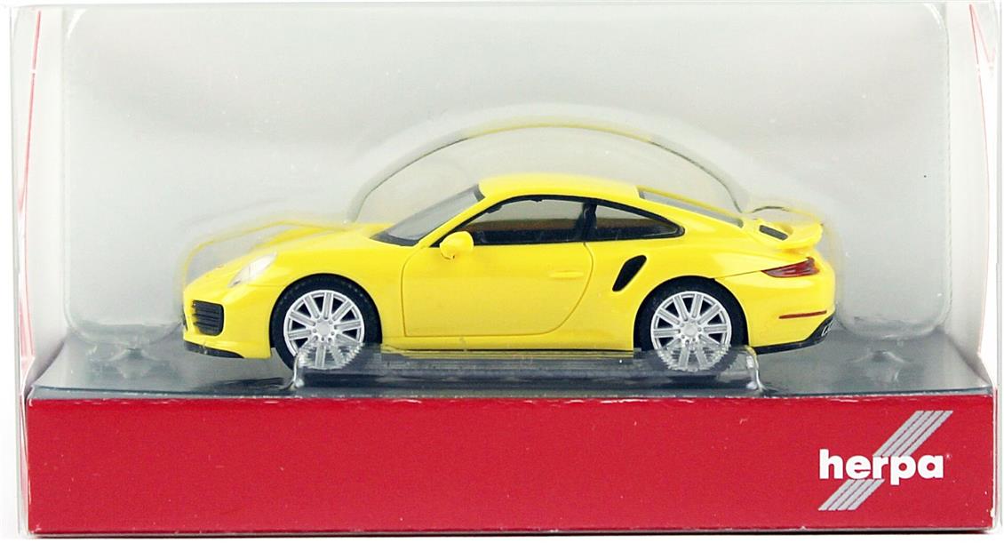 HERPA 028615-003 1/87 Scale Porsche 911 Turbo Racing, Yellow, Model Vehicle Ready to Exhibit