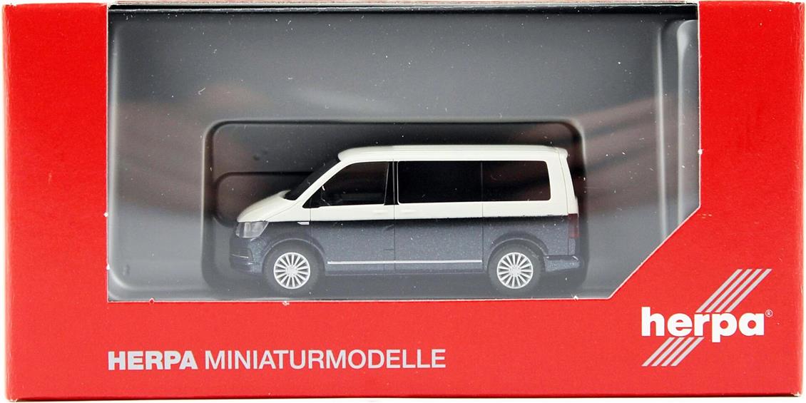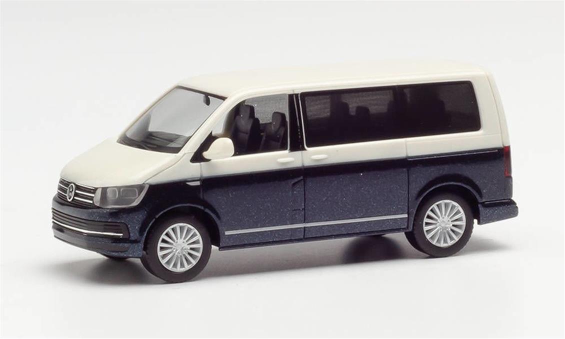 Herpa 038730-002 1/87 Scale, VW T6 Minibus, Blue/White, Ready-to-Display Model Vehicle (HP038730002)