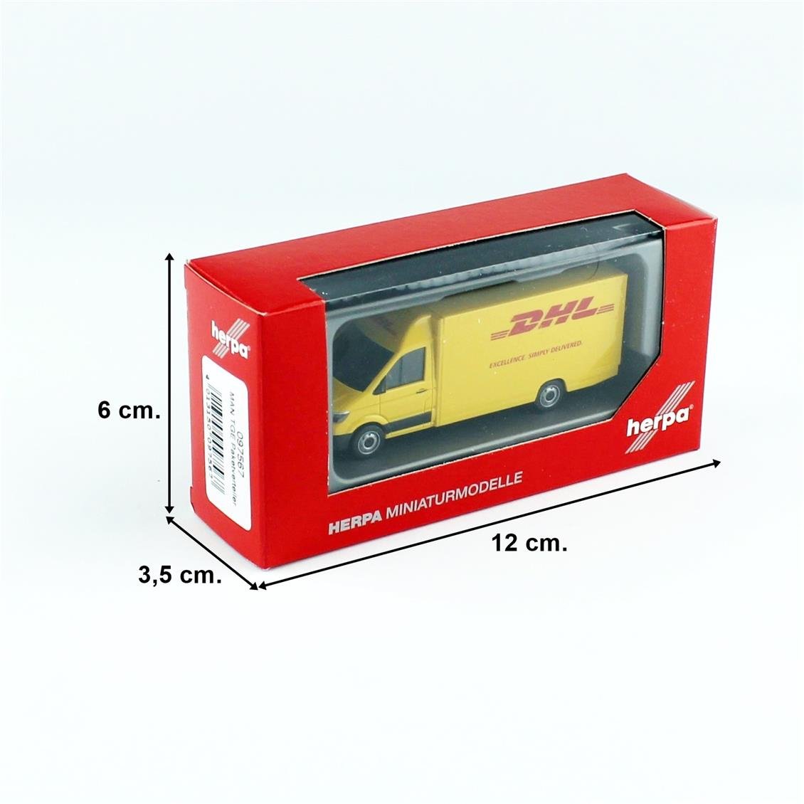 HERPA 097567 1/87 Scale, Man Tge, Cabinet and DHL logo cargo van, ready to exhibit model vehicle