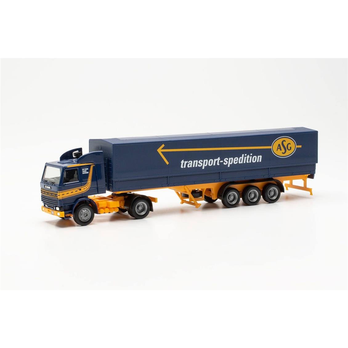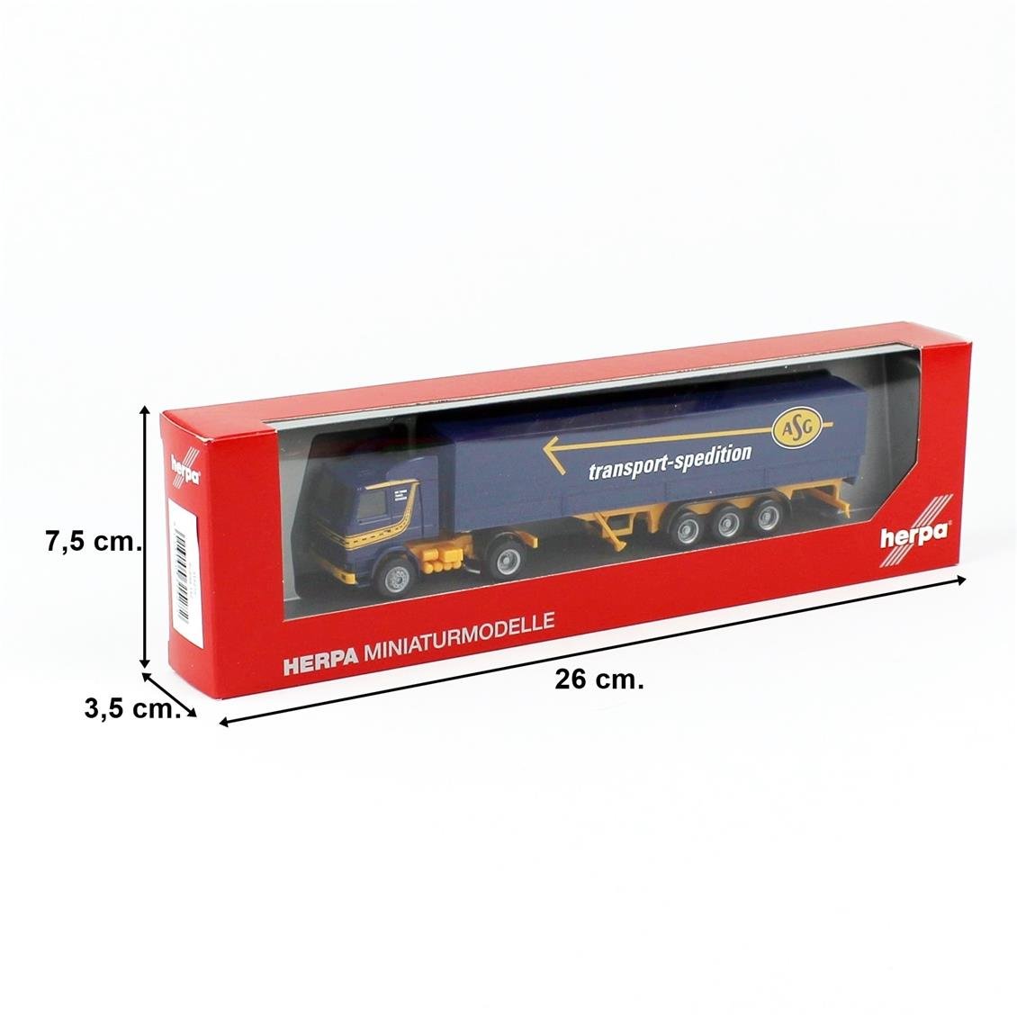 EU SVENSKA Godsbilcentraler or in short Asg. This Scania 142, dating from the early 1990s, has the design of the Swedish transport company, which operates under its name until 1999. The blue/yellow color containing only distinctive arrows has a high recognition value and usually "copied" for their "own" designsThis model is a state of reduced to 87 ratio of the real car. It is used by collectors. The average length of the 87 scale vehicles is 4 cm. Herpa model cars are small -scale versions of real vehicles. Ideal for collectors, these car models are produced on a 1:87 scale and include miniatur versions of different brands and models. Discover these car models produced by Herpa Miniaturmodelle and expand your collection. OtherHerpaYou can see model tools here.