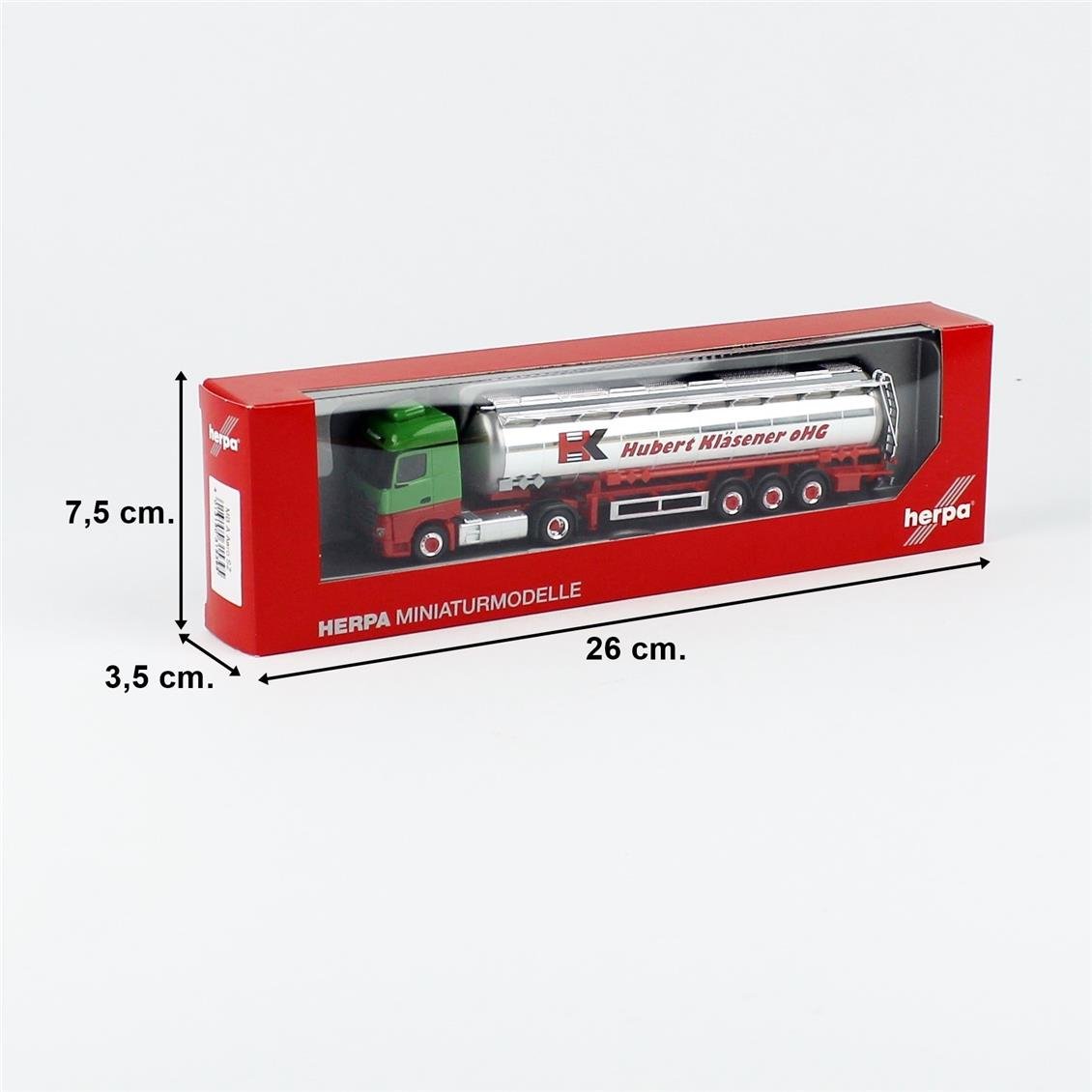 The fleet of Gelsenkirchen-based shipping company Hubert Kläsener uses Mercedes-Benz Actros tractors and various different tanker trailers. Herpa produces a Mercedes-Benz Actros Streamspace with a chrome-coated Jumbo tank trailer of the famous shipping company in the first place.This model is a state of reduced to 87 ratio of the real car. It is used by collectors. The average length of the 87 scale vehicles is 4 cm. Herpa model cars are small -scale versions of real vehicles. Ideal for collectors, these car models are produced on a 1:87 scale and include miniatur versions of different brands and models. Discover these car models produced by Herpa Miniaturmodelle and expand your collection. OtherHerpaYou can see model tools here.