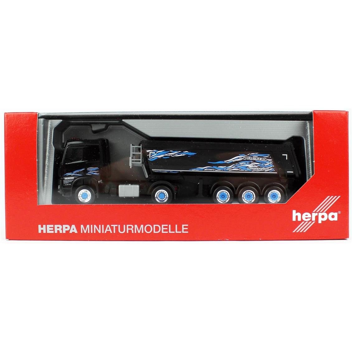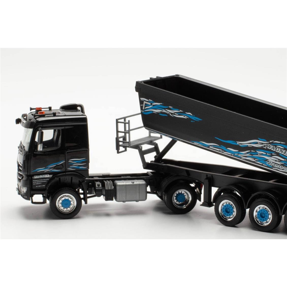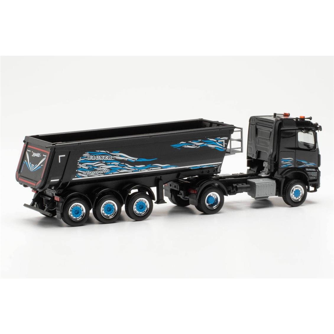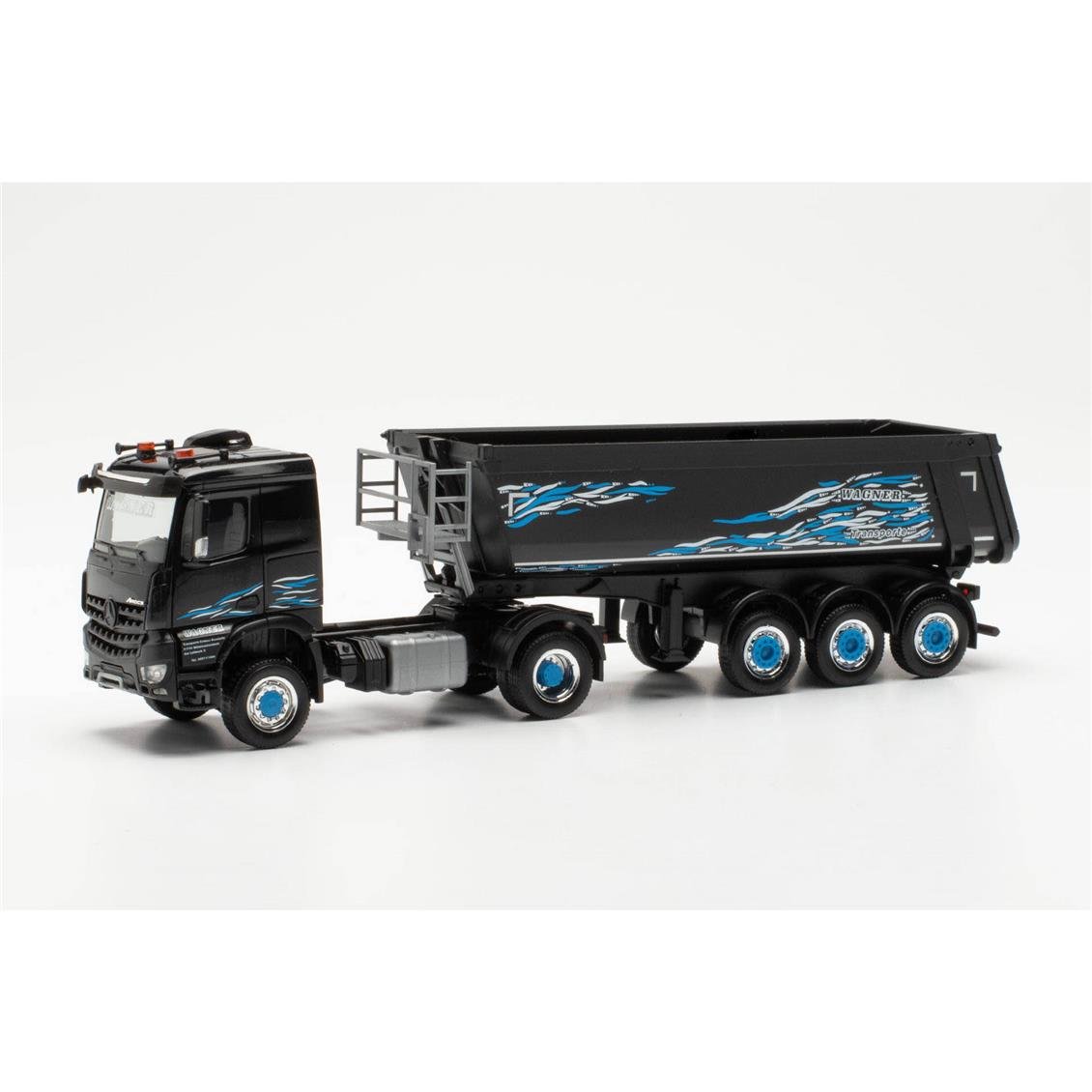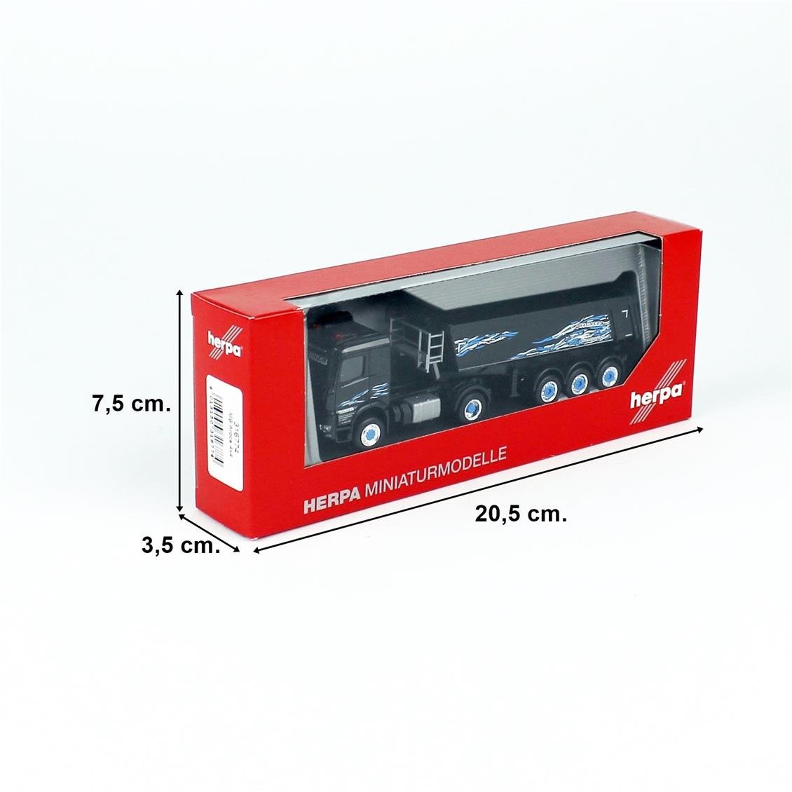 • 1 HERPA 316774 1/87 Scale, MB AROCS Classic Space 4x4 Damper Semi Tug, black patterned, ready to exhibit model vehicle