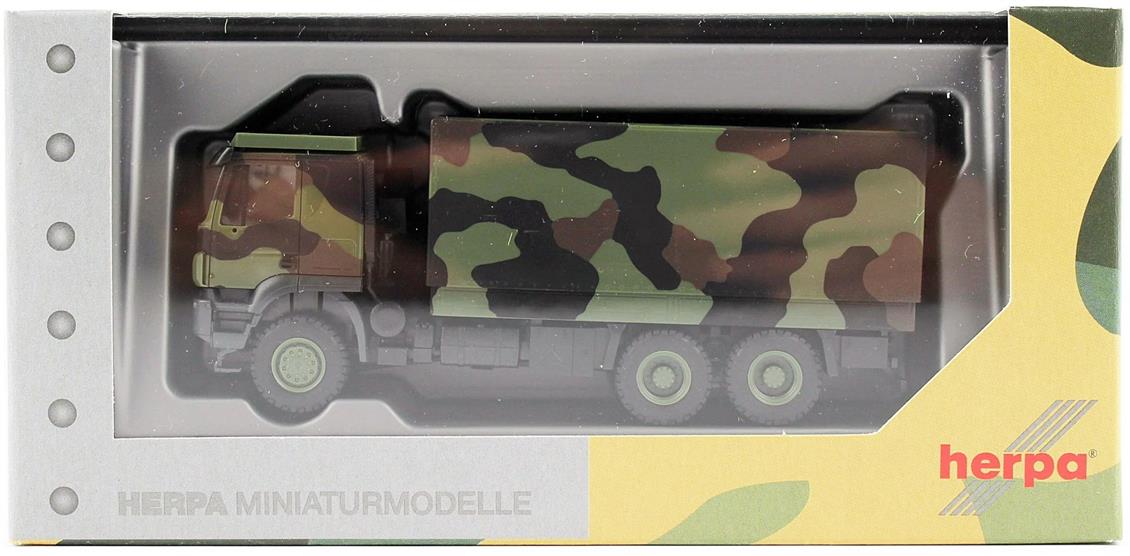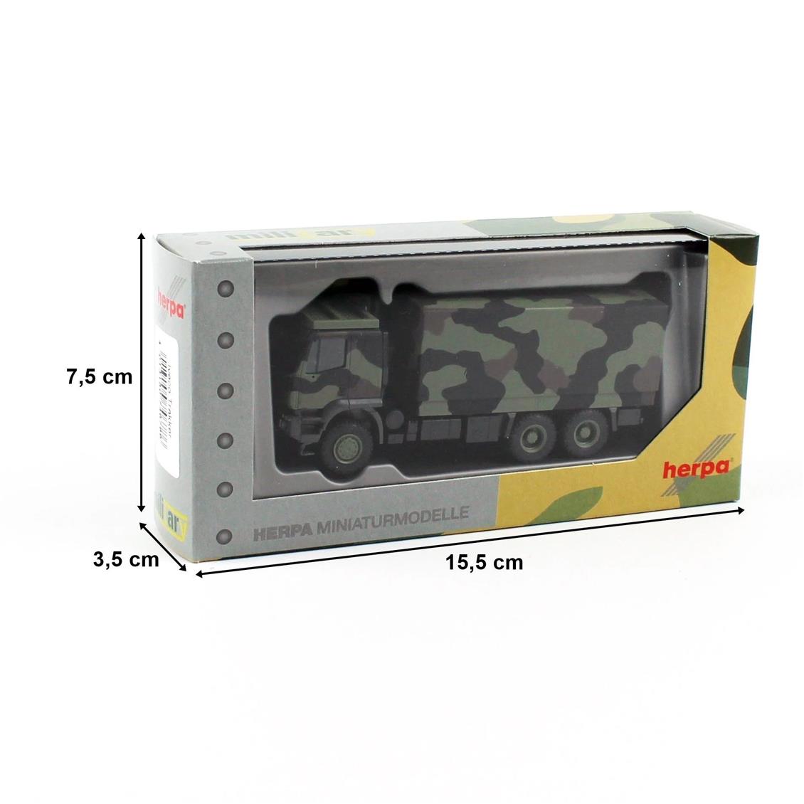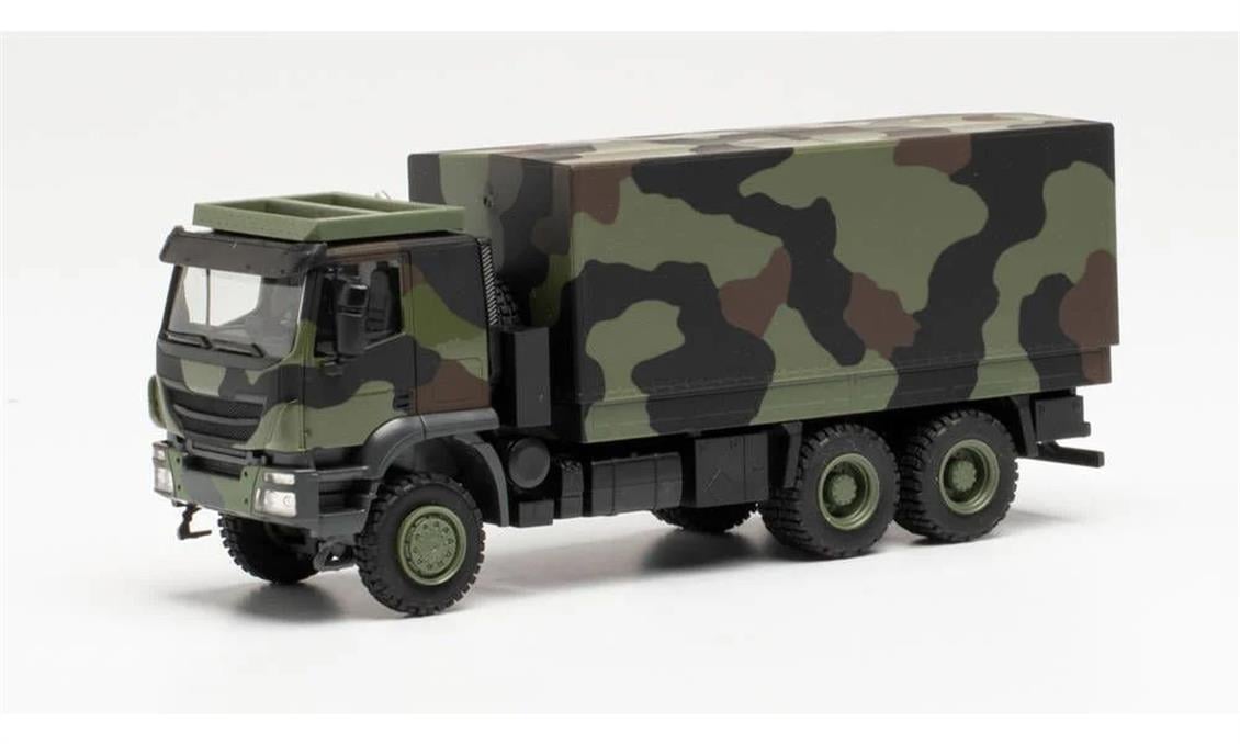 Herpa 746786 1/87 Scale, IVeco Trakker Closed Box Truck, Camouflage, Ready for Display Model Vehicle (HP746786)