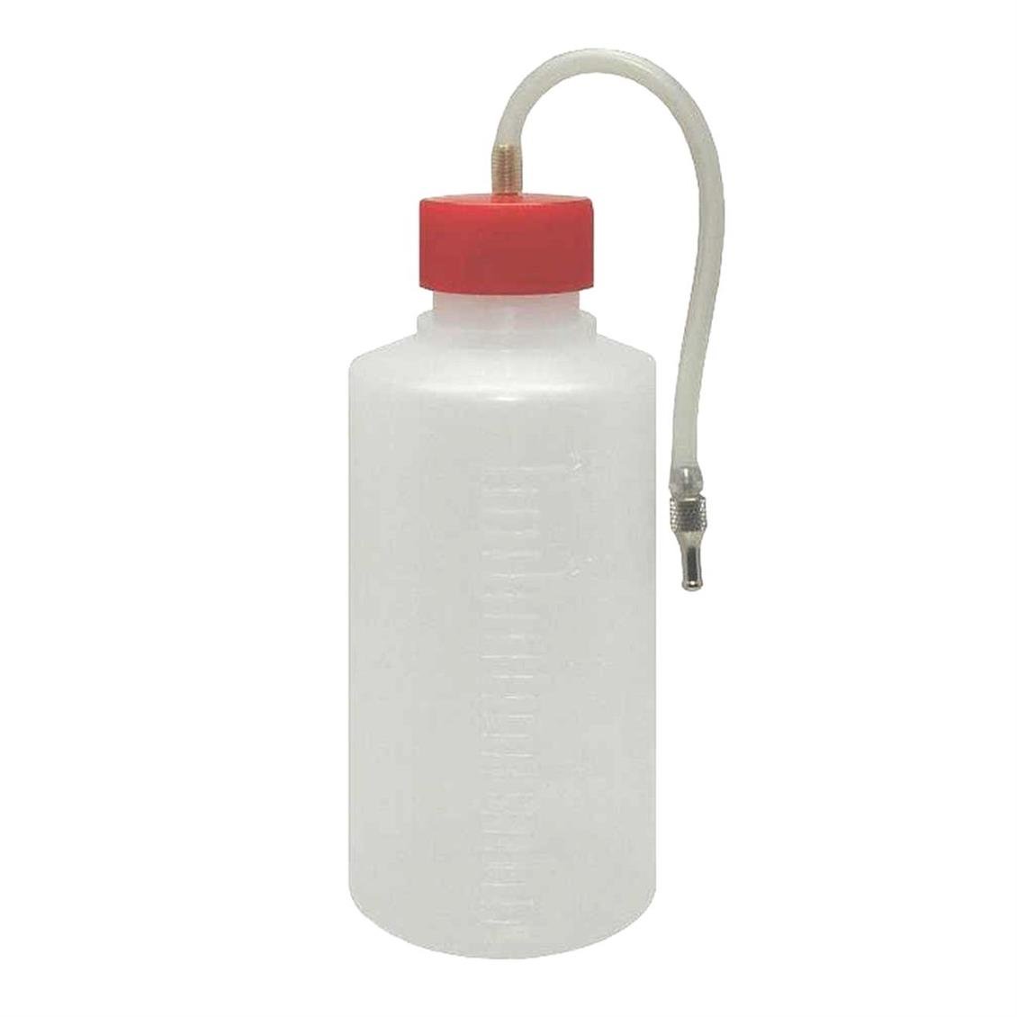250 cc. In volume, the fuel filling container with a special tip to attach the model aircraft to the fuel hose.