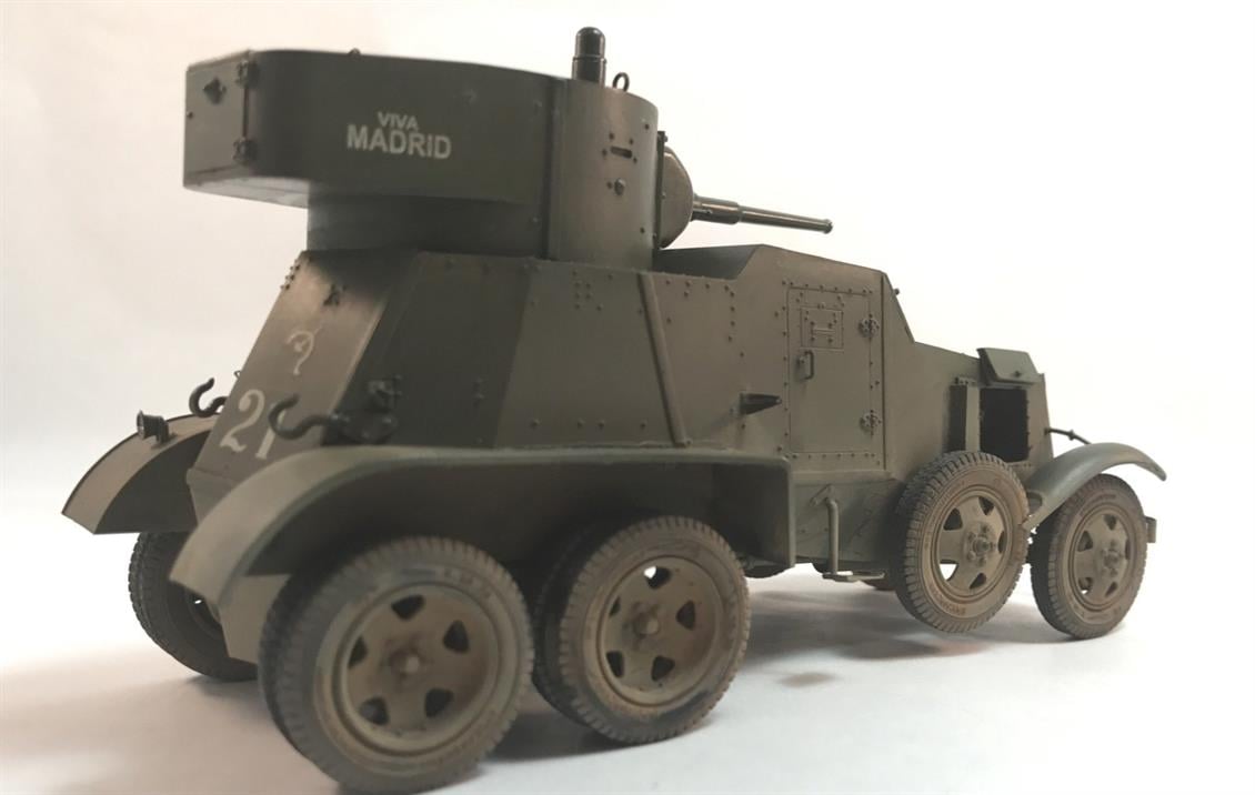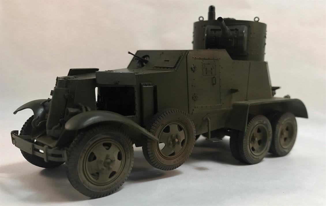 BA-3 was a heavy armored car developed in the Soviet Union in 1933, and followed by BA-6, a slightly modified model in 1936. Both were mostly based on the Ba'a, the most important difference was equipped with the new turret as in the T-26 M1933 and BT-5 tanks, as well as the 45 mm main ball. Approximately 180 BA-3 cars were produced in 1935 until production was stopped. Most of the BA-3 production was based on the Ford-TIME, the US Ford AA 4x2 truck, the Ford-TIME, but the last party was produced. The Russian version of the _Ayni chassis-Gaz-AAA continued to be used in BA-6. The greatest limitation of BA-3 was the ability to move, as a result of unnecessary large weight, limited to roads or to a very hard floor. The innovation, which increased its mobility slightly, was the auxiliary ("general") palette that could be attached to the back tandem wheels and effectively converts the vehicle into a semi -pallet.