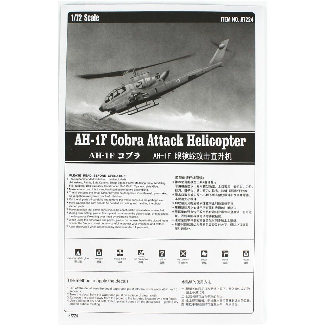 Hobbyboss 87224 1/72 Scale AH-1F Cobra Attack, Military Helicopter Plastic Model Kit