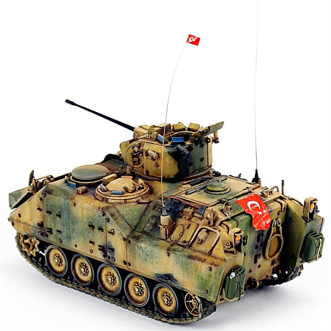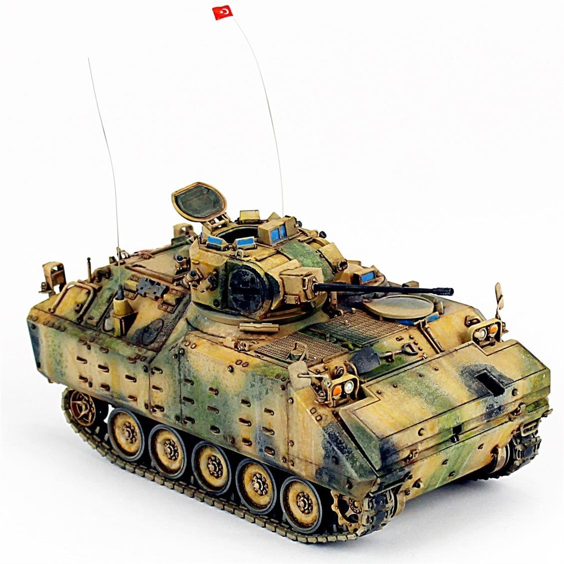 ACV-300 is a family of armored battlefields that are used as an armored war vehicle and armored personnel carrier developed by FNSS, a Turkish defense industry company. ACV is named after the English Armored Combat Vehicle's Turkish words. The American-made infantry war vehicle has been based on the ACV-300 production. The vehicle is currently serving in the armies of Türkiye, Malaysia and the United Arab Emirates.The FNSS company has developed the ACV-300 model based on the AIFV vehicle on providing the operational needs of the Land Forces Command. The first trial vehicle was developed in 1992. The main AIFV vehicle, which is based on, has a 25 mm ball and a single -man turret equipped with a 7.62 mm donkey machine rifle.FNSS Defense Industry has been installed with rubber wheels that will allow the ACVs produced by the defeated generation to progress on the highway. In this way, the range of the vehicle has been extended and has reached much superior loading and pulling capacity. This tool can be completely amphibious. The standard equipment of the vehicle includes night vision system, NBC (nuclear, biological and chemical) protection system and fog bomb shooter.There are 2249 units in the inventory of the Turkish Army and 136 vehicles in the United Arab Emirates. In 2000, the Malaysian Army ordered 211 ACV-300 in different models and all of them were delivered.In the AIFV vehicles produced for Malaysia, FNSS and DRB-Hicom Defense Technologies (Deftech), a local company, have cooperated. ACV-300 vehicles belonging to Malaysia are called Adnan Plug. This name II. During World War II, he received Malaysian Captain Adnan Bin Saidi who fought on the Singapore Front.In ACV-300 vehicles, many different turret systems can be installed in line with the customer's requests. In addition, small gratings can be opened next to the vehicle in order for the infantry in the vehicle to shoot outside targets.Adnan vehicles have RVH Tacnav Model GPS, LWD Avimo Laser Warning System, Wegmann 76 mm Bomb, NBC Protection System and SNVS-2 Model Night Vision Systems.A Mi-17 helicopter belonging to a Syrian Air Force was reduced to the Idlip region using ACV-300 with the support of FSA and Turkish artillery.