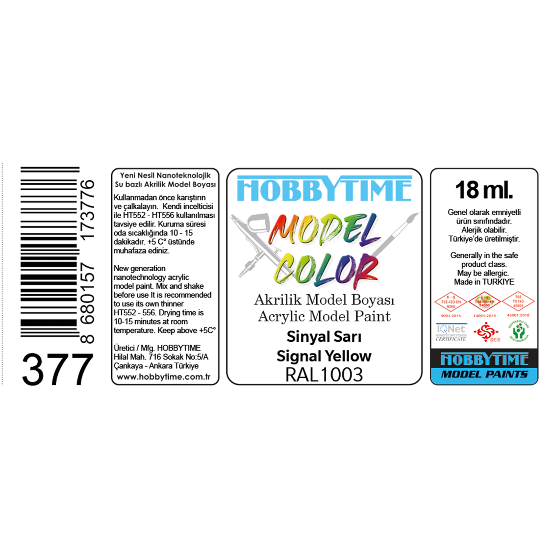 Brand:Hobbytime Model Kits Stock Code:Ht377 Measurement:18 ml. Type:Model paint Material:Acrylic