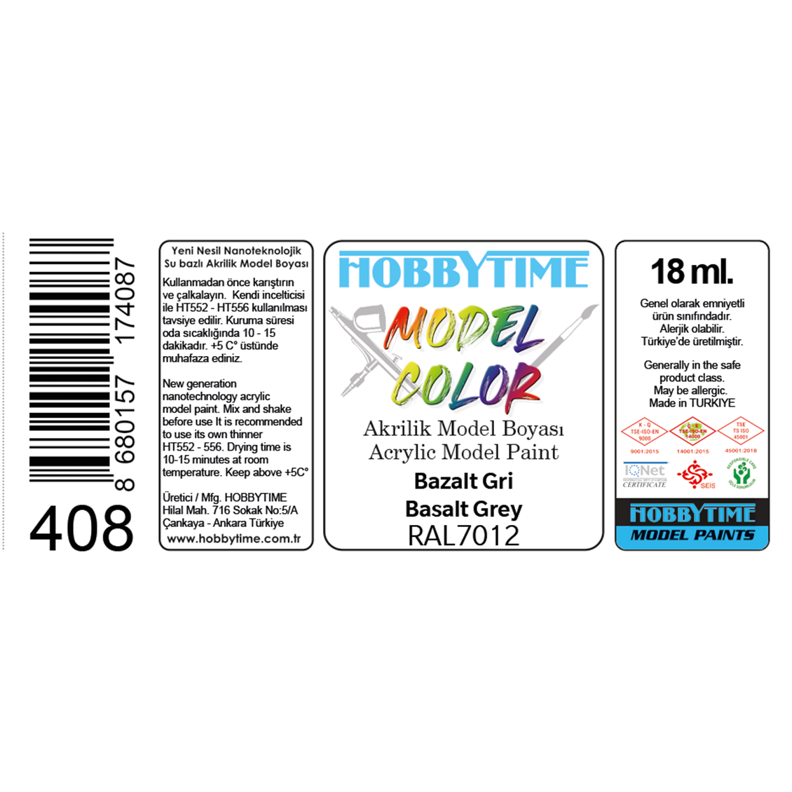Hobbytime 408 18 ml. RAL7012, Basalt Gray (Basalt Gray), Acrylic Model Painting