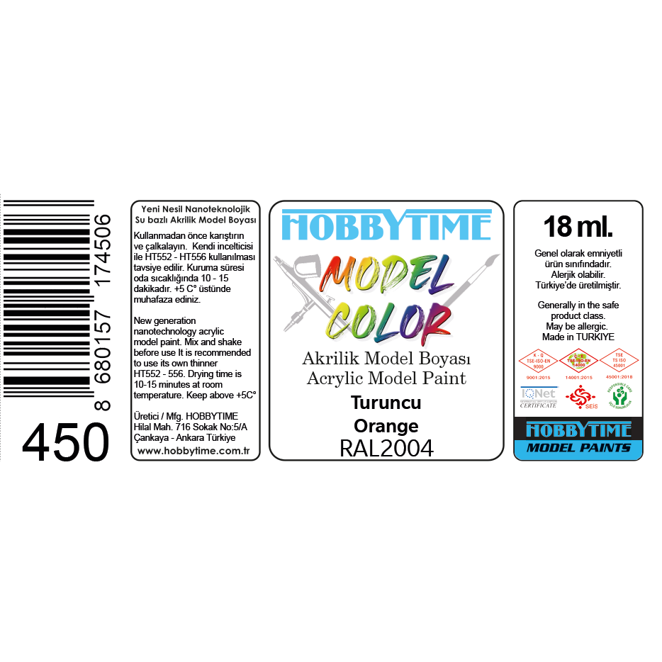 Hobbytime 450 18 ml. RAL2004 Orange, Acrylic Model Paint