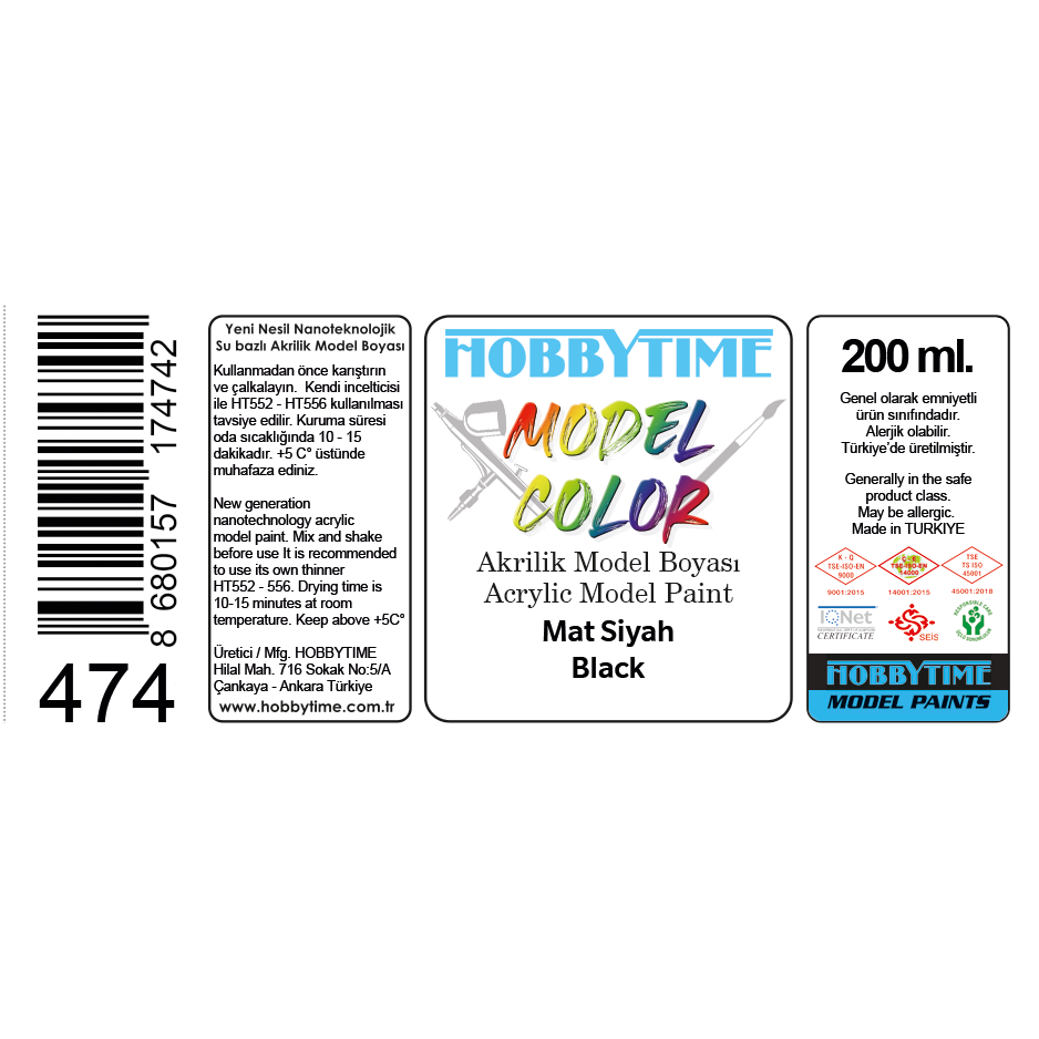 Brand:Hobbytime Model Kits Stock Code:Ht474 Measurement:200 ml. Type:Model paint Material:Acrylic