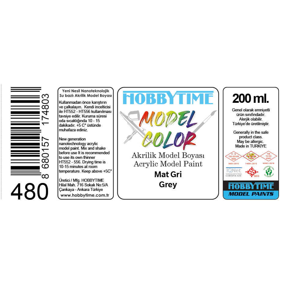 Brand:Hobbytime Model Kits Stock Code:HT480 Measurement:200 ml. Type:Model paint Material:Acrylic