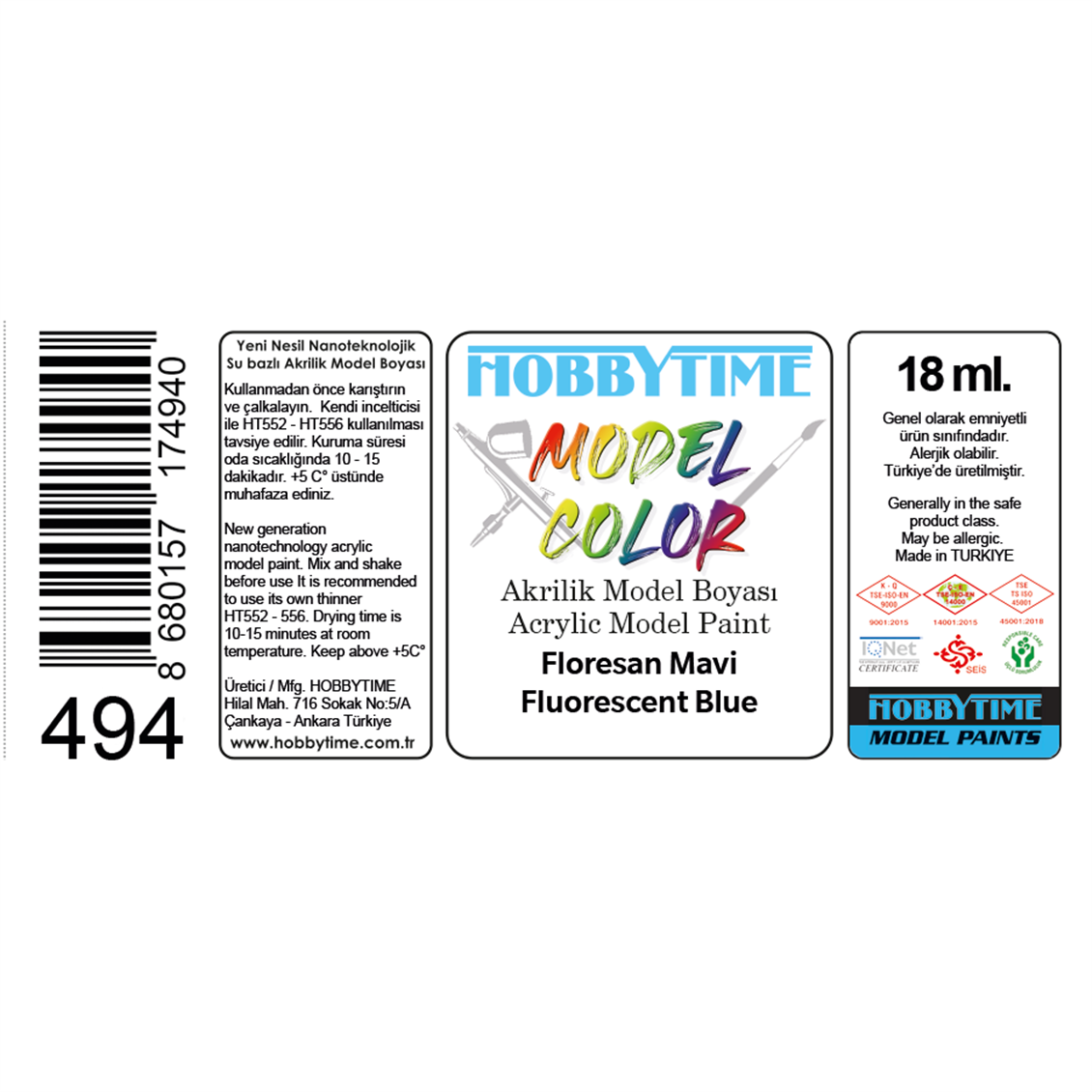 Brand:Hobbytime Model Kits Stock Code:Ht494 Measurement:18 ml. Type:Model paint Material:Acrylic
