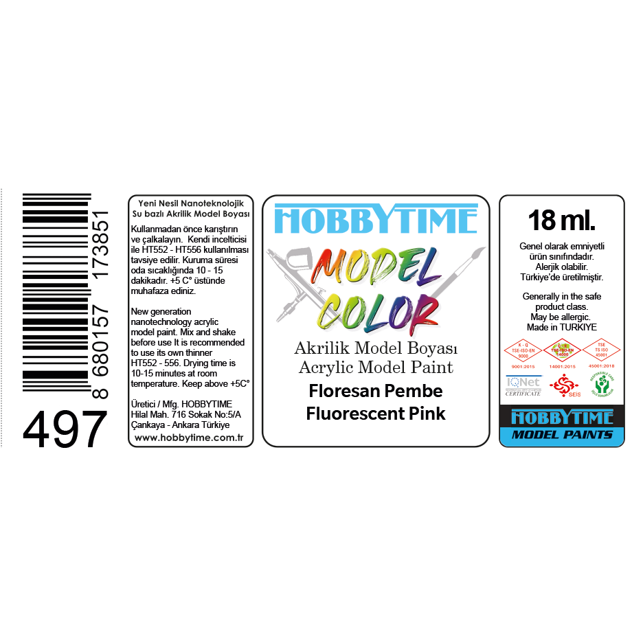 Brand:Hobbytime Model Kits Stock Code:HT350 Measurement:18 ml. Type:Model paint Material:Acrylic