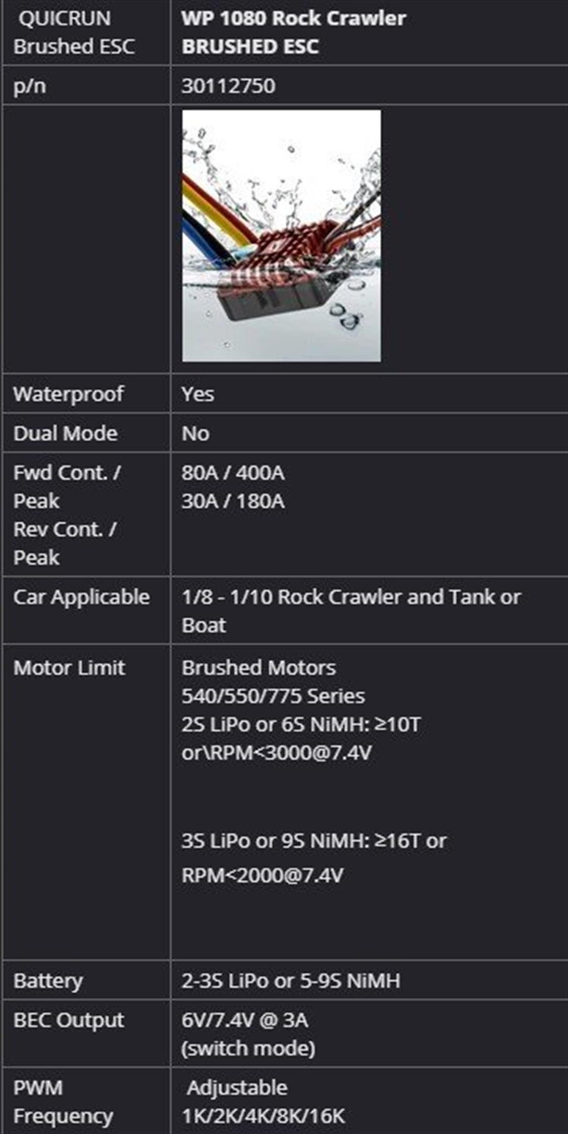 Hobbywing 30112750 Quicrun WP 1080 Electronic Speed Control ESC Brand:Hobbywing