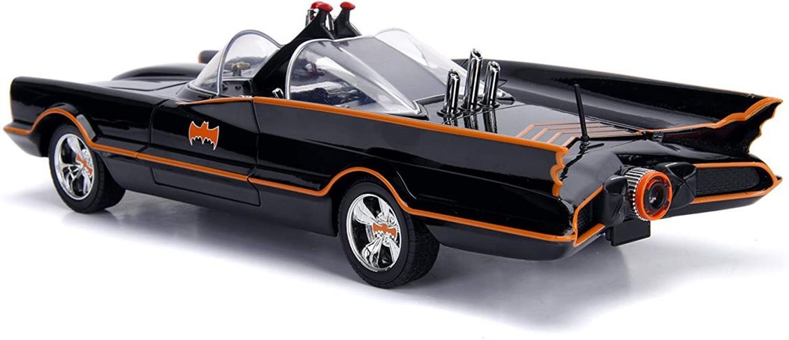 Jada 98625 1/18 Scale, Batmobile (Batman and Robin Figures), Front and Rear Lights, Ready to Display Metal Car Model (JD98625)