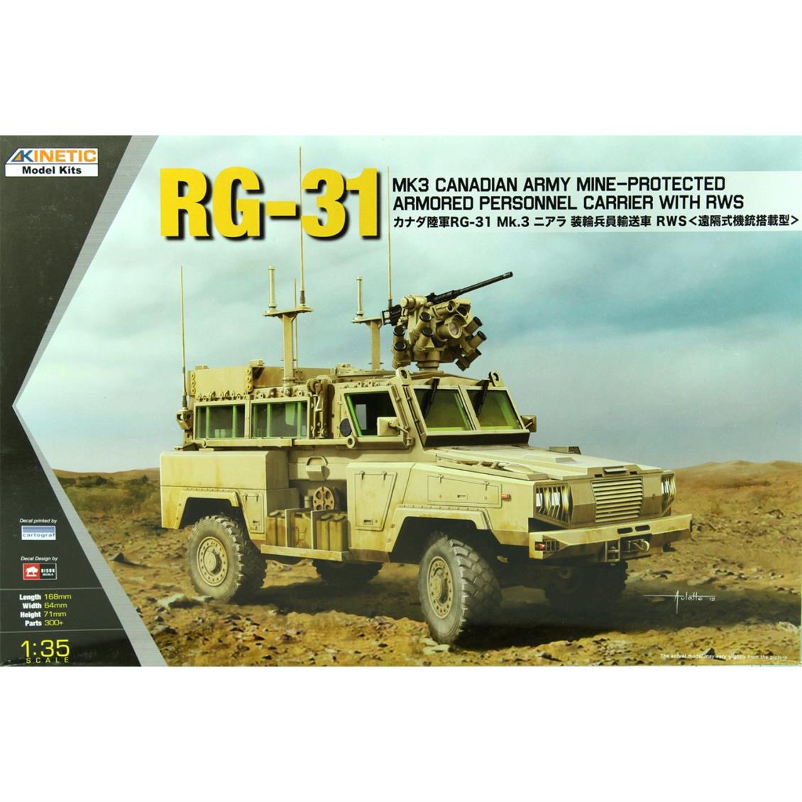 61010 1/35 RG-31 MK3 Canadian Army Armored Patrol Tool Plastic Model Kit BRAND :Condemnant PRODUCT Code:61010 SCALE :1/35 PIECE Number:300+ Sizes : Length: 16.4 cm.Width: 6 cm.Height: 7 cm. CONTENTS : 1 RG-31 Armored War Vehicle1 Photo Etched1 Mounting Guide1 DEGAL FEATURES : All communication equipmentPositionable ceiling coversPositionable rear entrance doorFor easy painting, tire and separately Stiren wheelsFull interior with a seating place for eightM2 .50 Caliber Machine Rifle History : RG-31 NALA UAE Systems Land Systems South Africa found in South Africa It is a multi -purpose mine -protected vehicle developed by its company.Mamba APC produced by TFM Industries in the construction of the vehicle is based. Plastic Model Features: