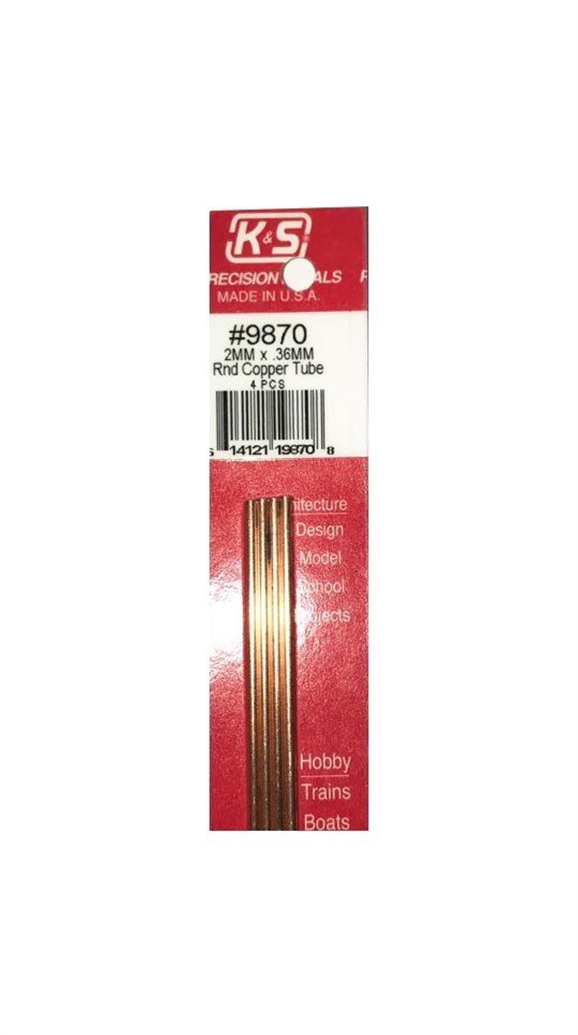 K & S Precision Metals 9870 Round Copper Pipes 2x0.36x300mm Brand:K & S
