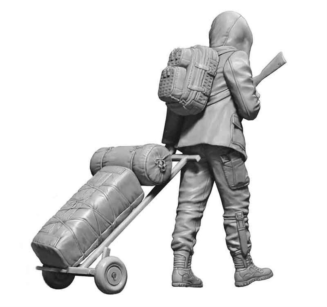 1/24 scale (about 3.5 inches) is a post-apocalyptic figure set-based figure set and bears "voyage to the apocalypse". The set contains one figure and revives a fighter trying to survive in a post-apocalyptic world. The figure is designed in detail with other survival materials such as worn outdated clothes, armor and weapons. The warrior carries a network prepared to hang in the car. Such figures can be used for the creation of model construction, collection or dioramatic scenes.