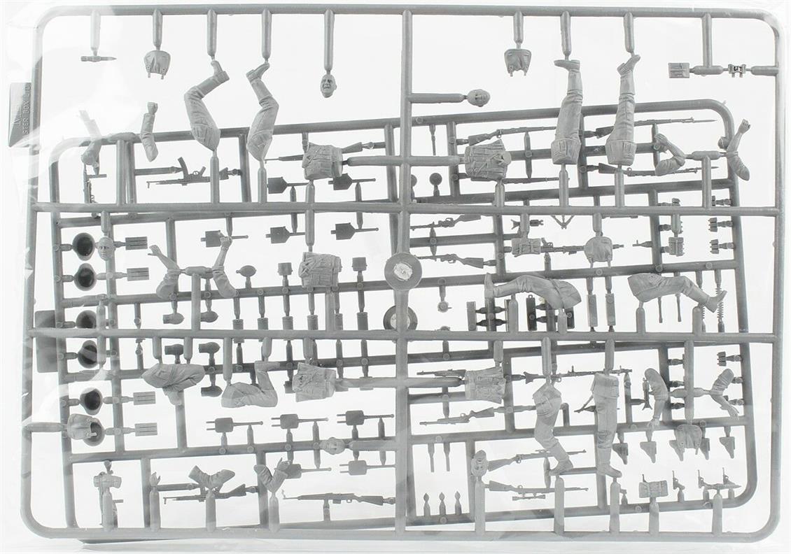 1/35 German Machinegun Team 1944 (MB35220) is a set of 1/35 scale. In 1944, the set depicts Germany's machine gun team. The set has three German military, a machine gun, an ammunition box and some environmental elements. The set is made of plastic and needs to be painted. This set is a popular choice for military modeling enthusiasts.