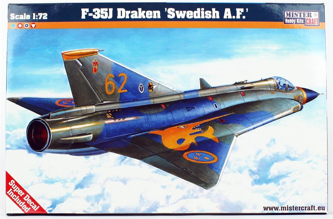 Mistercraft D088 1/72 F-35J Draken (Swedish A.F.) Fighter Aircraft Disassembled Plastic Model