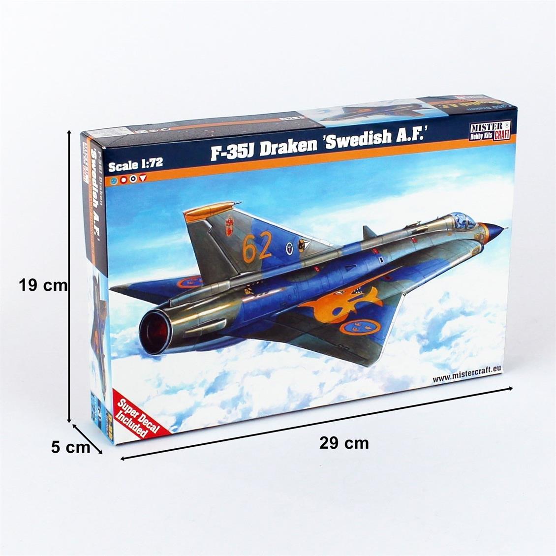 Mistercraft is one of the one -to -one price performance kits of Mistercraft for newly starting models thanks to its low -part and simple structure recognized by many modelists with highly different designs produced for the Swedish Air Force during the Cold War.Saab 35 Draken is a Swedish hunter aircraft produced by Saab between 1955-1974. Draken is designed to replace Saab 29 Tunnan and Saab 32 Lansen planes. The J35 has been an effective Cold War period supersonic hunter plane and has been in the service of Sweden as well as Austria, Denmark and Finland Air Force.
