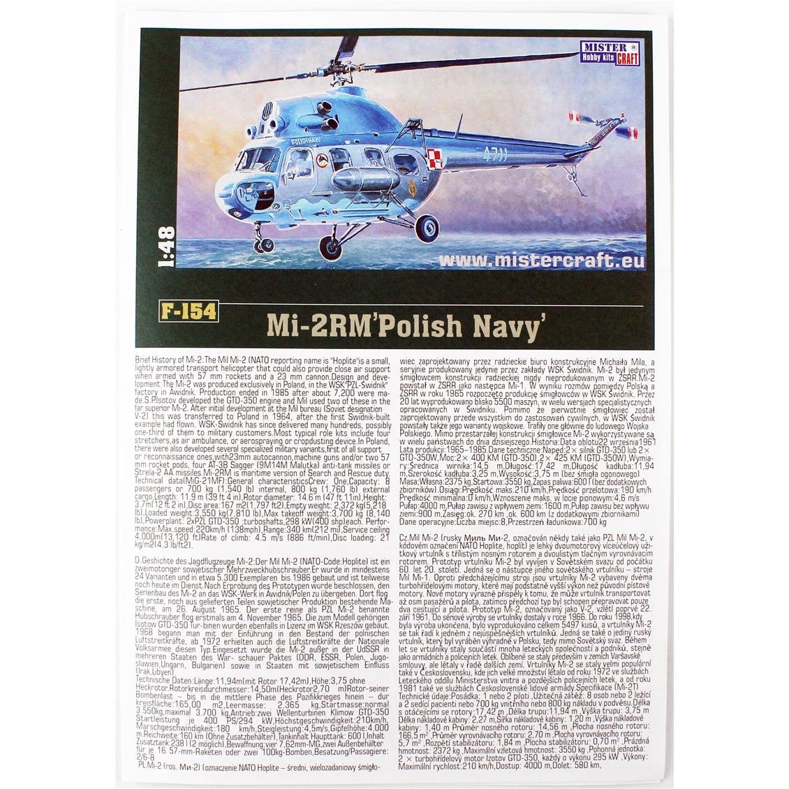 Mistercraft F154 1/48 Mi-2 RM (Polish Navy) Military Helicopter Plastic Model Kit