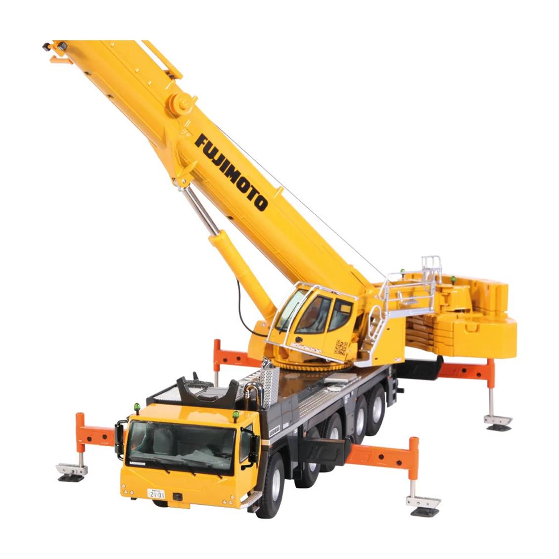mobile craneCompany paint: Fujimoto JukiThere are only 90 pieces for the European marketIt was produced in a limited number of 300 units!designed boomdetailed superstructuremoving cabinIndividual orientable axlesExtending Supportsspring chassisboom 5 times telescopic2 Hooks IncludingBom can be locked in 3 locations: 46 %, 92 %, 100 %Additional Mounted Mechanical Folding Crane LeverLength: 325 mmMax. Bom length: 1,235 mmMax. sleeve length: 1,650 mmWeight: 2,347 kgScale: 1:50Year of Publish: 2021Material: casting