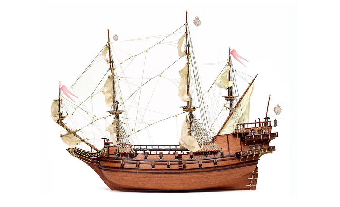 Discover one of the ship modeling jewels that will enable you to enjoy the magnificent moments and to re -live the age that these magnificent ships set sail in the oceans. In the reproduction of the model, the original is loyal.Apostol Felipe Galleons King Felipe IV Martín also built by Arana. It formed a part of "silver galleons". Such Kalyon was used to carry goods and treasures in the "Indians race". As a member of the Kalyon fleet, he made his first journey by carrying treasures to Spain in 1629.Until 1633, Guardian was an flagship of Armada. He took part in the Brazil war to save Pernambuco and took part in the War of Dunas and carried troops and money to Flanders.