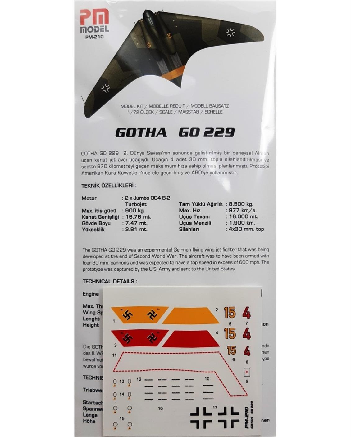PM MODEL 210 1/72 GOTHA GO-229 A1 A1 Hunter-Bombardading Aircraft Disassembled Plastic Model