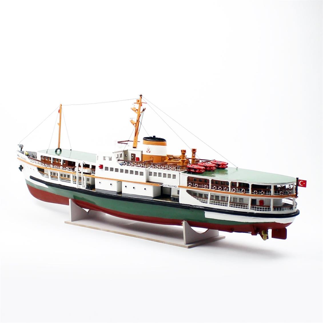 The Paşabahçe ferry is the largest and fastest ferry of its period, which is always operated in Kabataş - Adalar -Yalova line with its 1952 Italian made, two -time diesel machines. Yalova flights were terminated in 1995 with the fact that Yalova was a province. Following the extensive renovation initiated at the Golden Horn Shipyard in 2020, the ferry was re -put into service with its new navigation systems and new four -time diesel machines in 2022 and became the 29th vessel of the Fleet of City Lines. It is currently the most powerful and fastest ferry of City Lines. 100 cm made. Paşabahçe passenger ferry model was made by master hands for months.