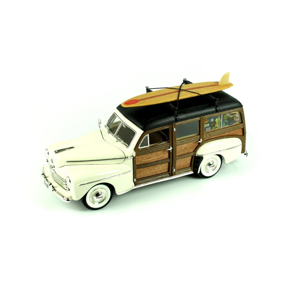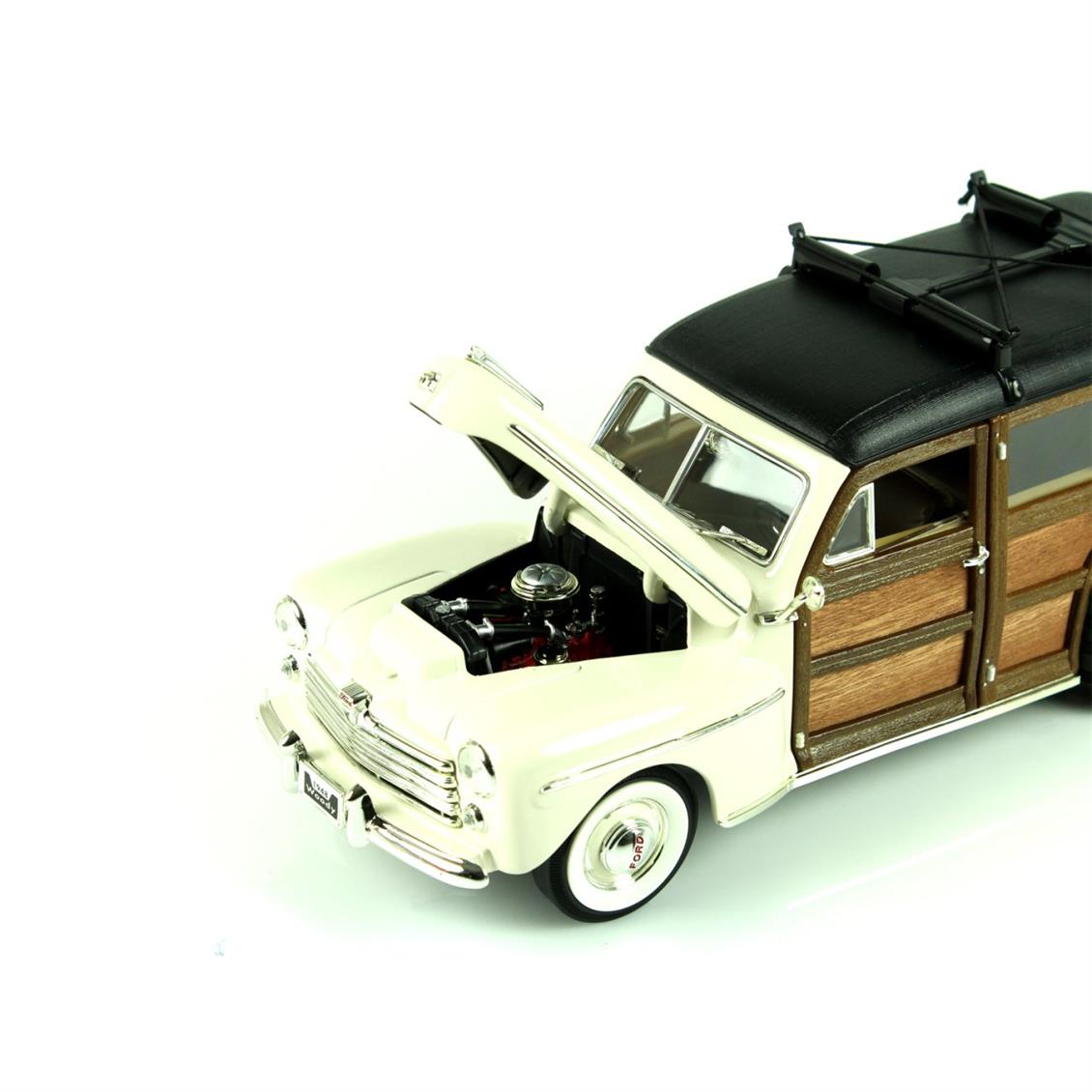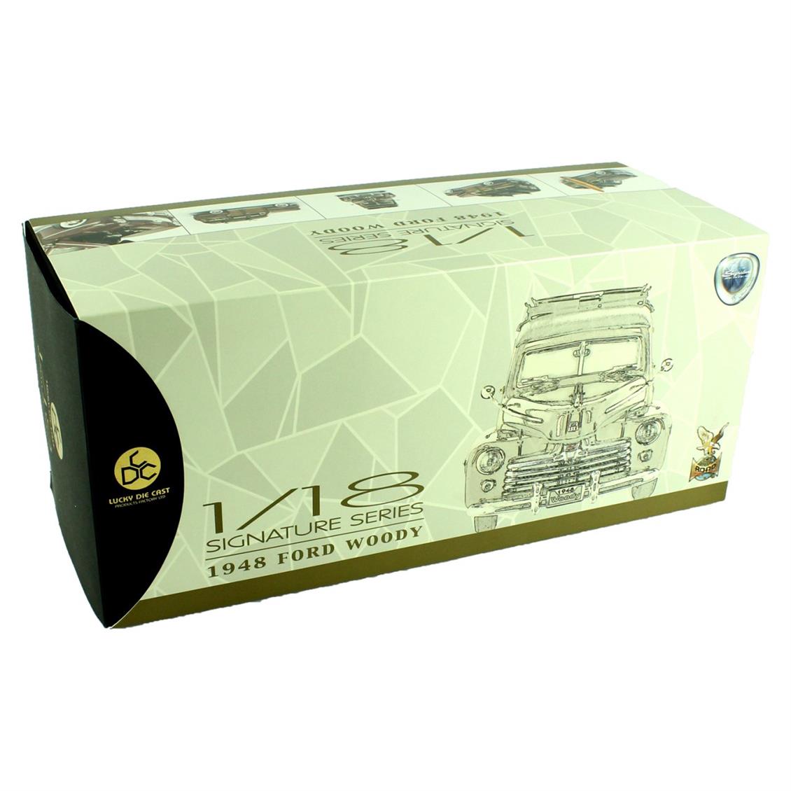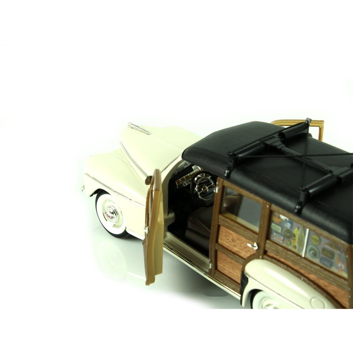 Lucky DIE CAST 20028 1/18 1948 Ford Woody Model car BRAND : Luckydıecast PRODUCT Code: 20028 SCALE :1/18 COLOUR :Cream / Wooden Frame Sizes : Length : 26.7 cm.Width: 10.6 cm.Height: 11.4 cm. CONTENTS : 1 Diecast Car FEATURES : Authentic interior flooringSome detailed parts are made of casting.Detailed engine compartmentRotating of the front wheelsHood, doors can be opened. DIECAST Cars: In general With the equivalent dimensions of real size vehicles consisting of metal alloy These are detailed metal cars.Plastic varieties are available, but it is usually metal.