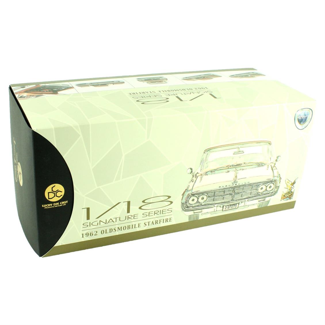 Lucky DIE CAST 20208 1/18 1962 OLDSMOBILE Starfire model car BRAND : Luckydıecast PRODUCT Code: 20208 SCALE :1/18 COLOUR :Burgundy Sizes : Length : 25.4 cm.Width: 10.1 cm.Height: 8.8 cm. CONTENTS : 1 Diecast Car FEATURES : Authentic interior flooringSome detailed parts are made of casting.Detailed engine compartmentRotating of the front wheelsHood, doors can be opened. DIECAST Cars: In general With the equivalent dimensions of real size vehicles consisting of metal alloy These are detailed metal cars.Plastic varieties are available, but it is usually metal.